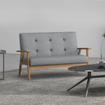Adopt comfort the retro way with this grey sofa. The frame is made from rubberwood for a sturdy structure, in a natural finish for versatility. It pairs wonderfully with the grey linen seat and back cushion, both of which are filled with thick padding for comfort. The button tufts on the back keep the upholstery taut, whilst adding to the style. The small couch is finished with non-slip feet for extra floor protection. It's time to fall in love with your living room all over again.