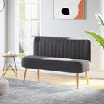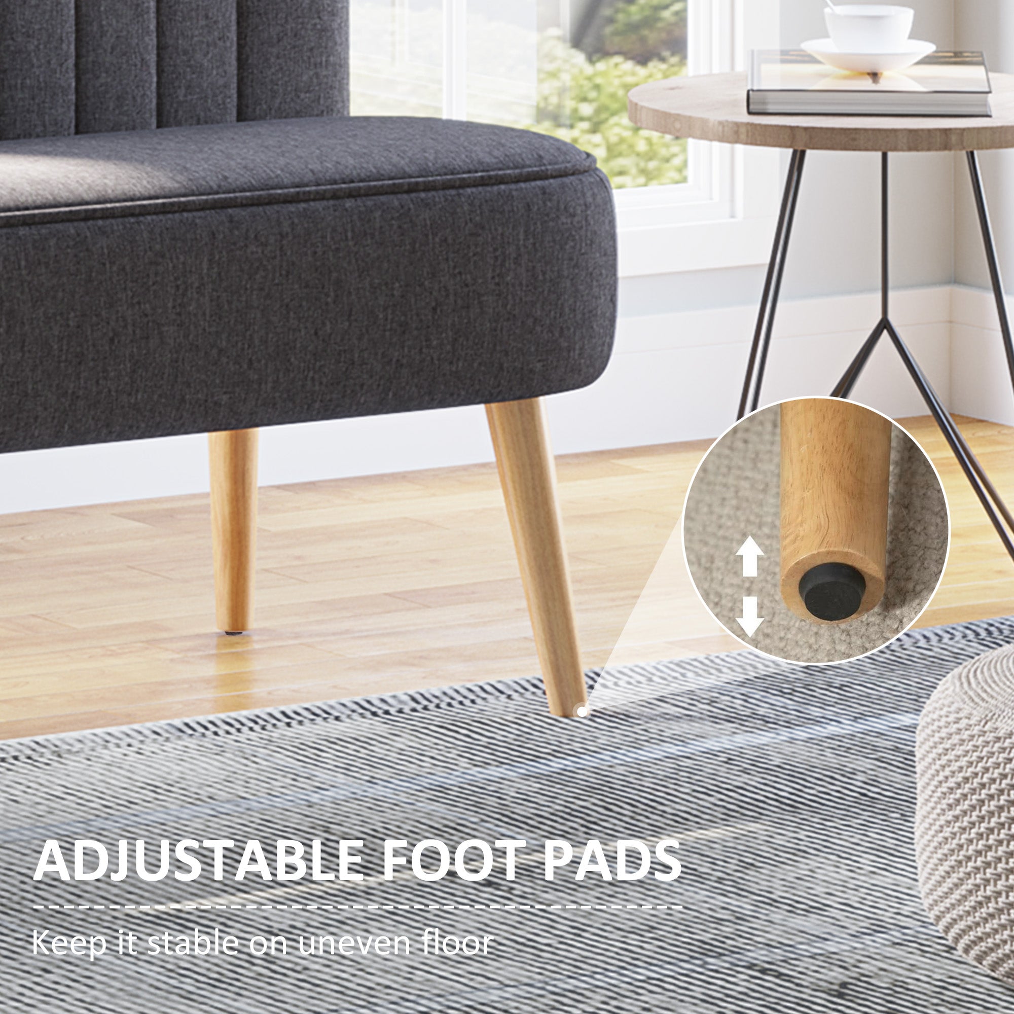 Modern Double Seat Sofa Loveseat Couch 2 Seater Compact Sofa Padded Linen Wood Leg Dark Grey
