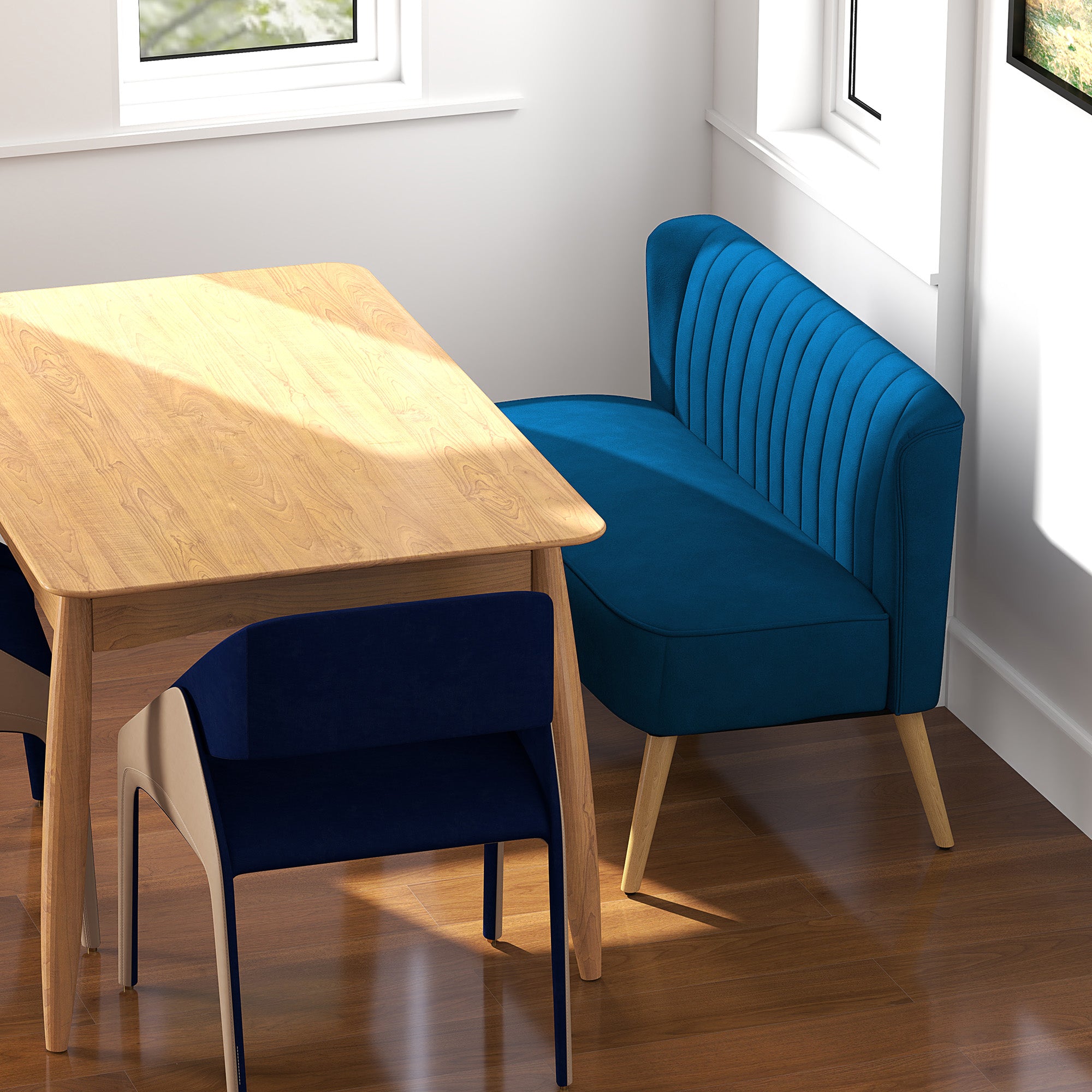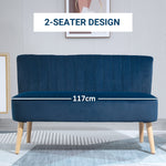 Modern Velvet Double Seat Sofa w/ Wood Frame Foam Padding High Back Soft Comfortable Compact Couch Blue
