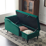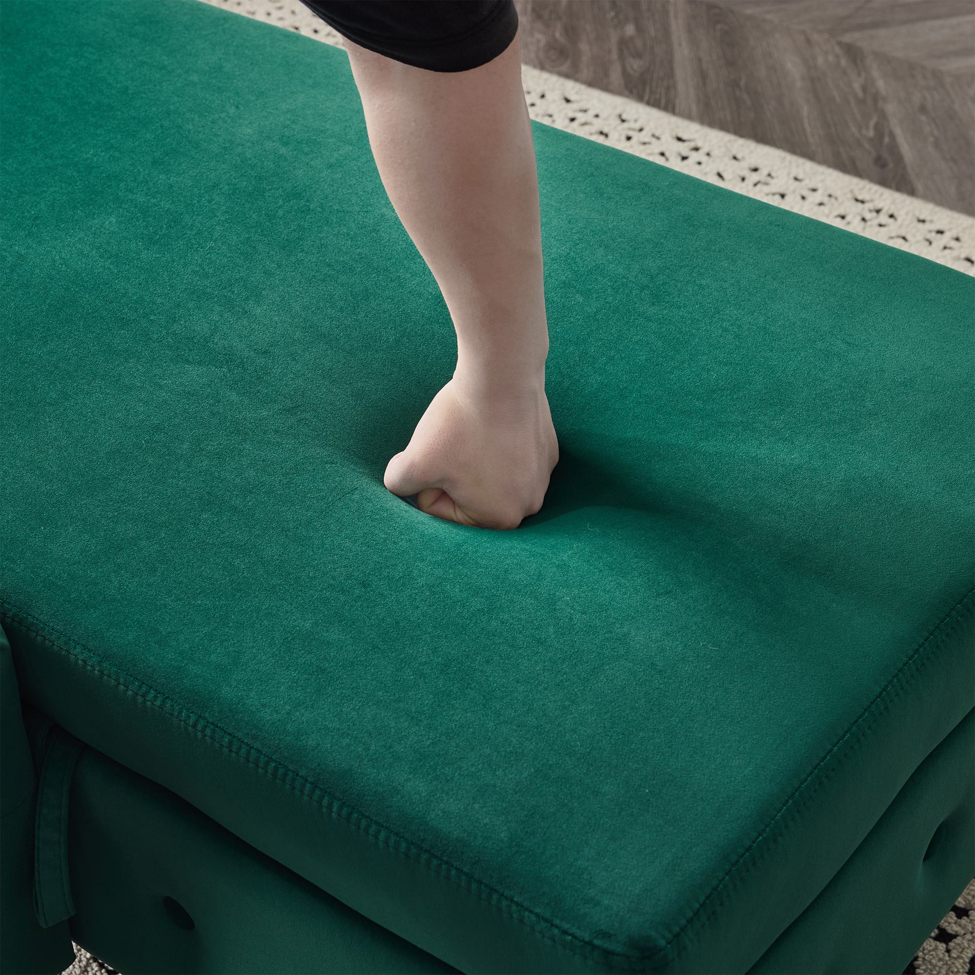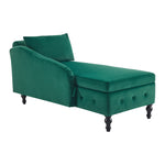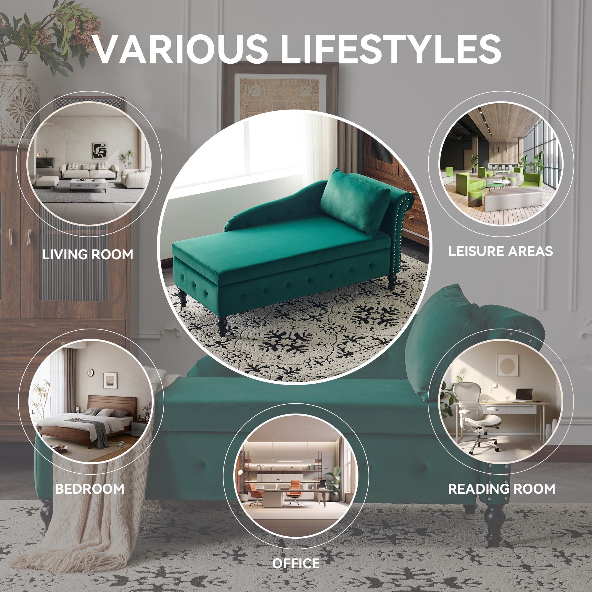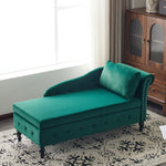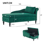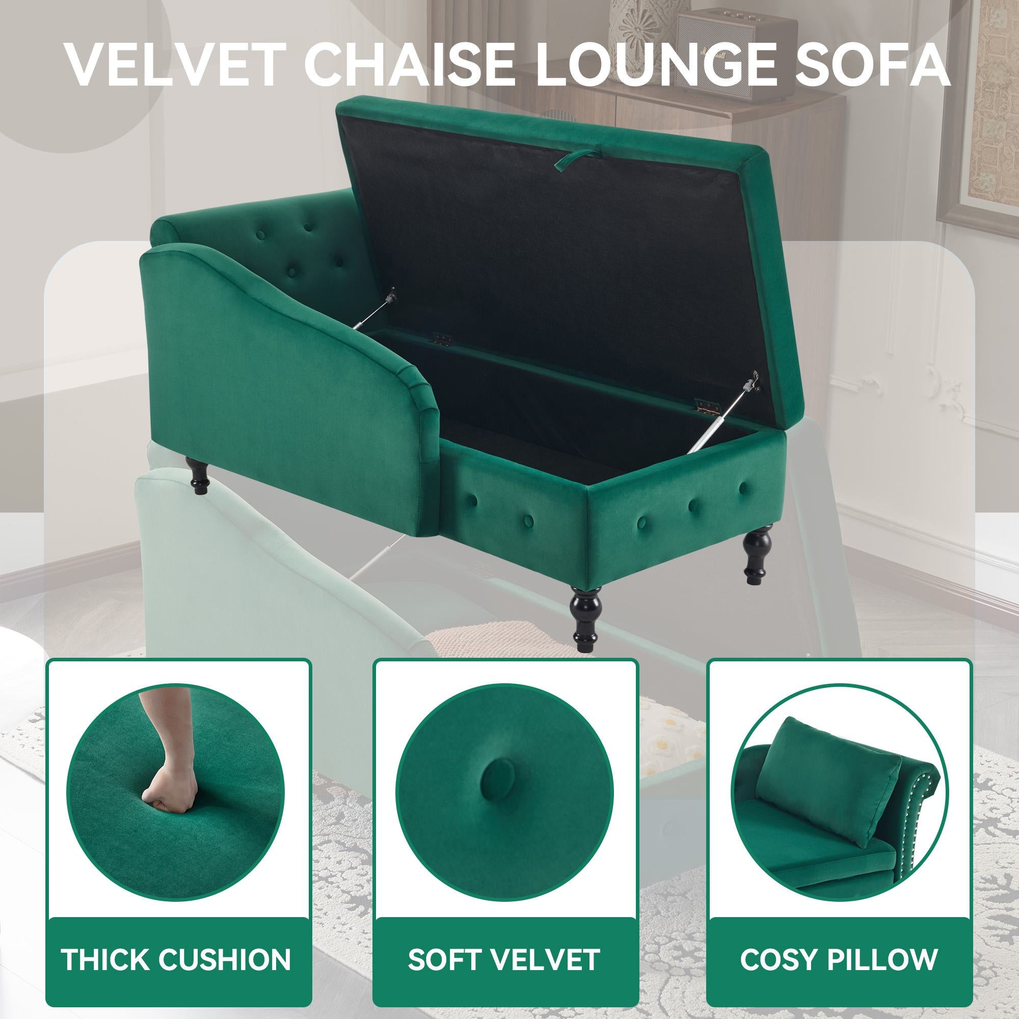 Velvet Upholstered Lounger Sofa with Storage, Pillow, Nailhead-Trim, Button-Tufted Lounge Chair, 144L x 62W x 69H cm, Green