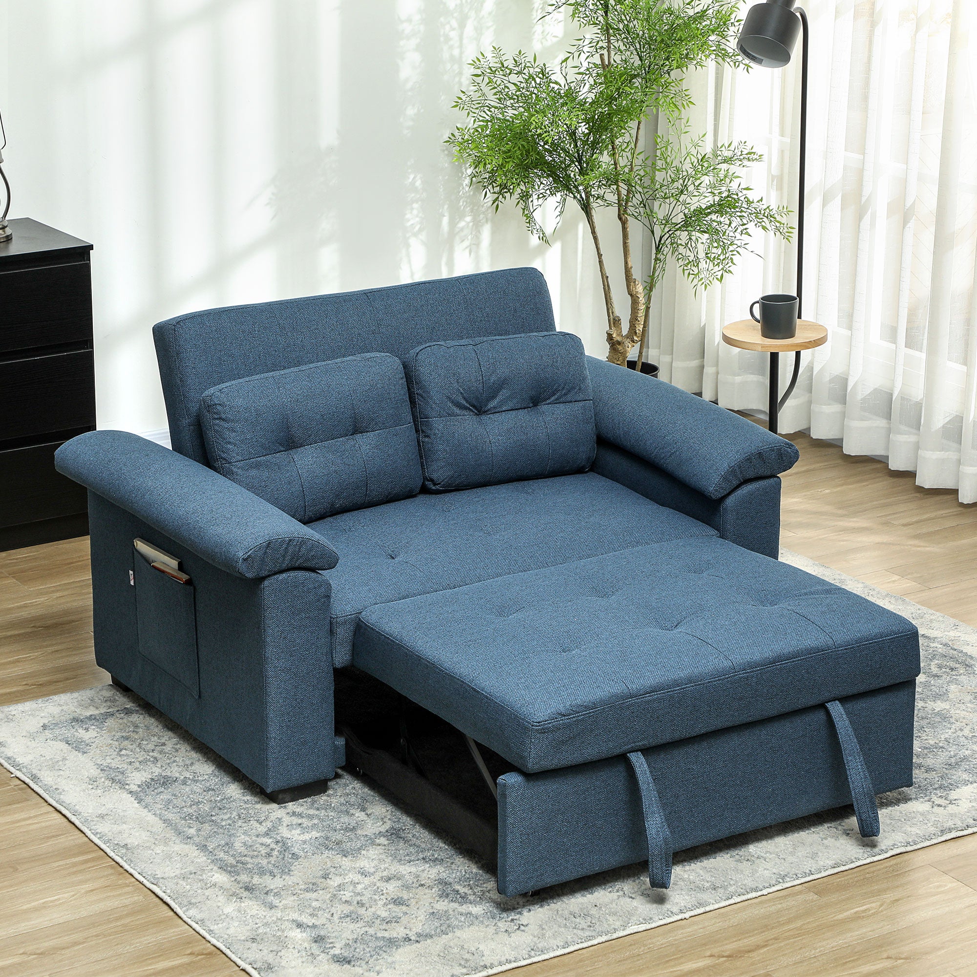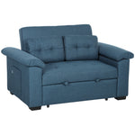 Pull Out Sofa Bed with 2 Pocket Springs, Fabric 2 Seater Click Clack Sofa Bed Settee, Convertible Sofa Couch with Pillows and Side Pockets for Living Room, Home Office, Blue