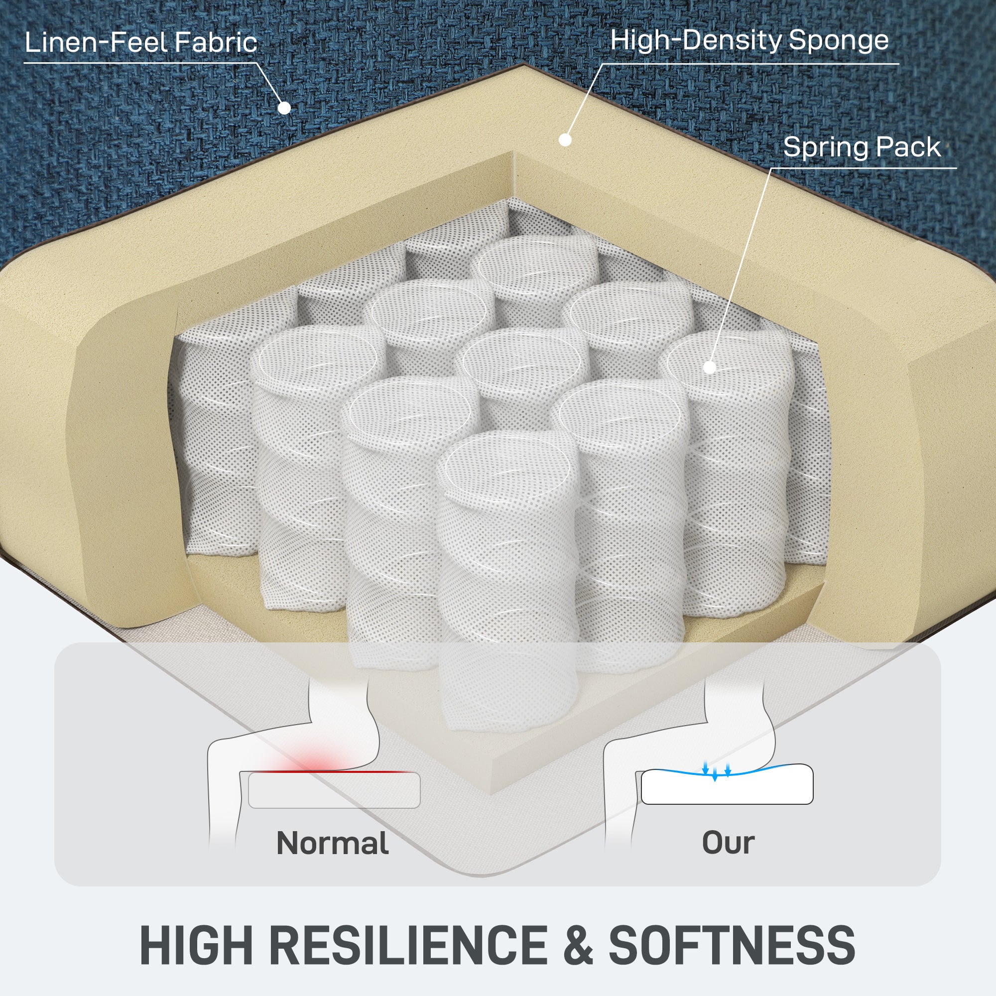 Pocket spring in both seat and pull-out section with high-density sponge offers comfort and support