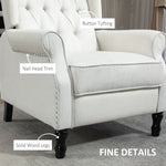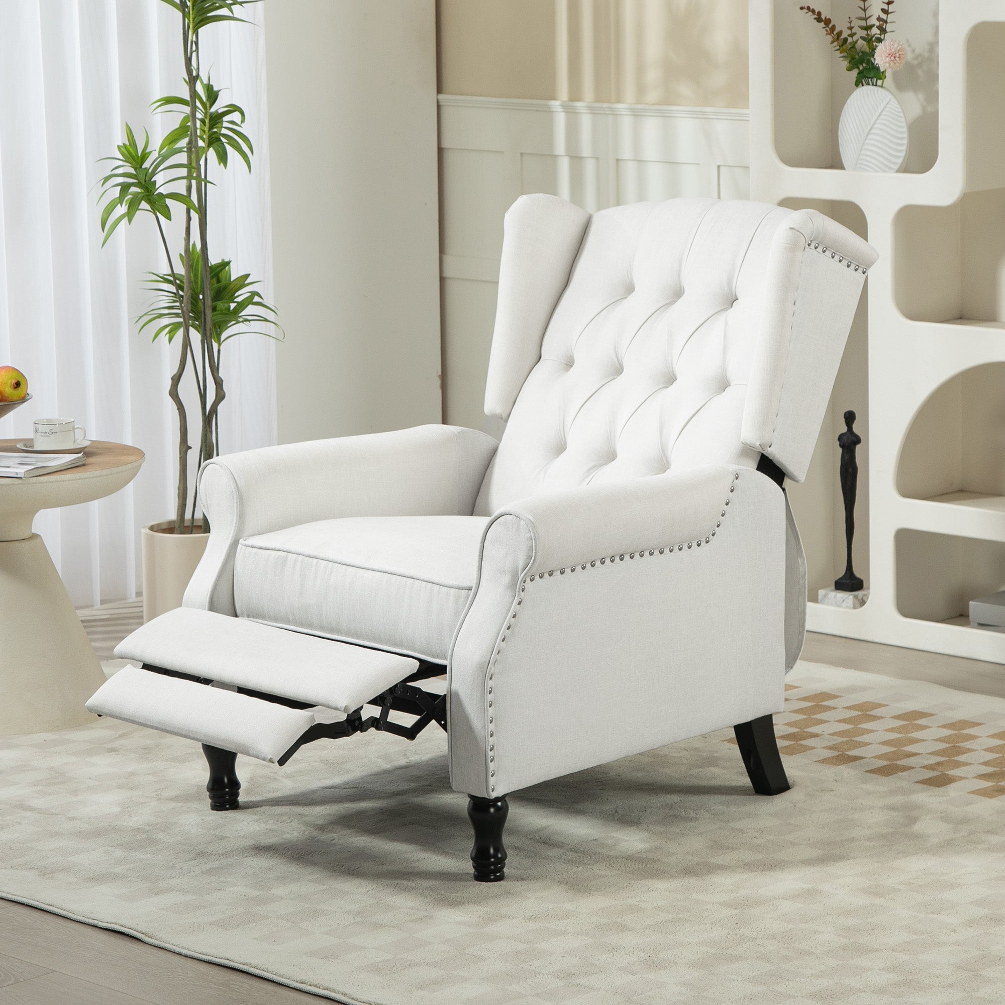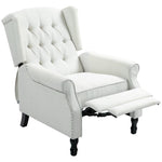 Recliner Armchair, Vintage Reclining Chair with Nail Head Trim, Wingback Chair with Button Tufted Back and Footrest, for Living Room, Cream White