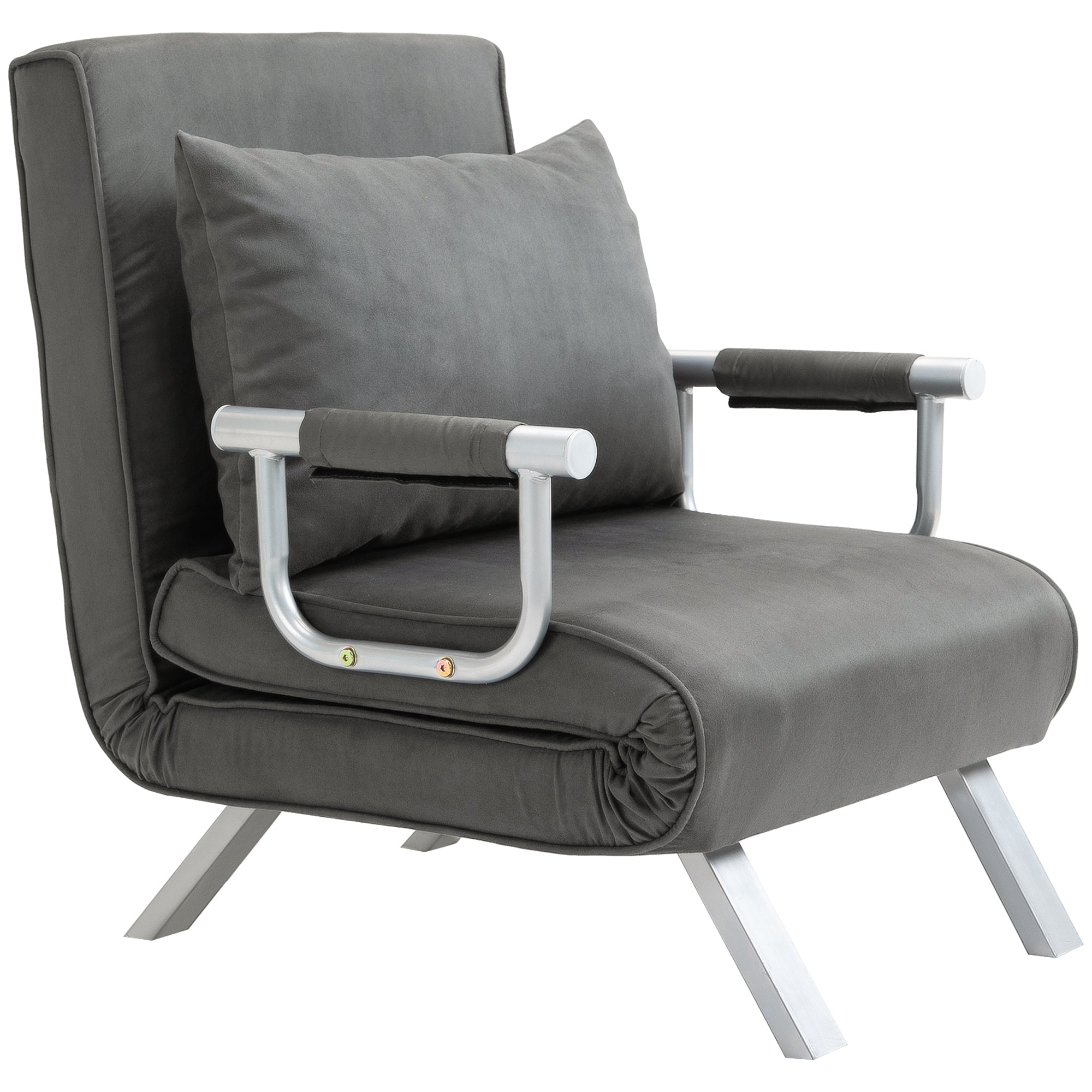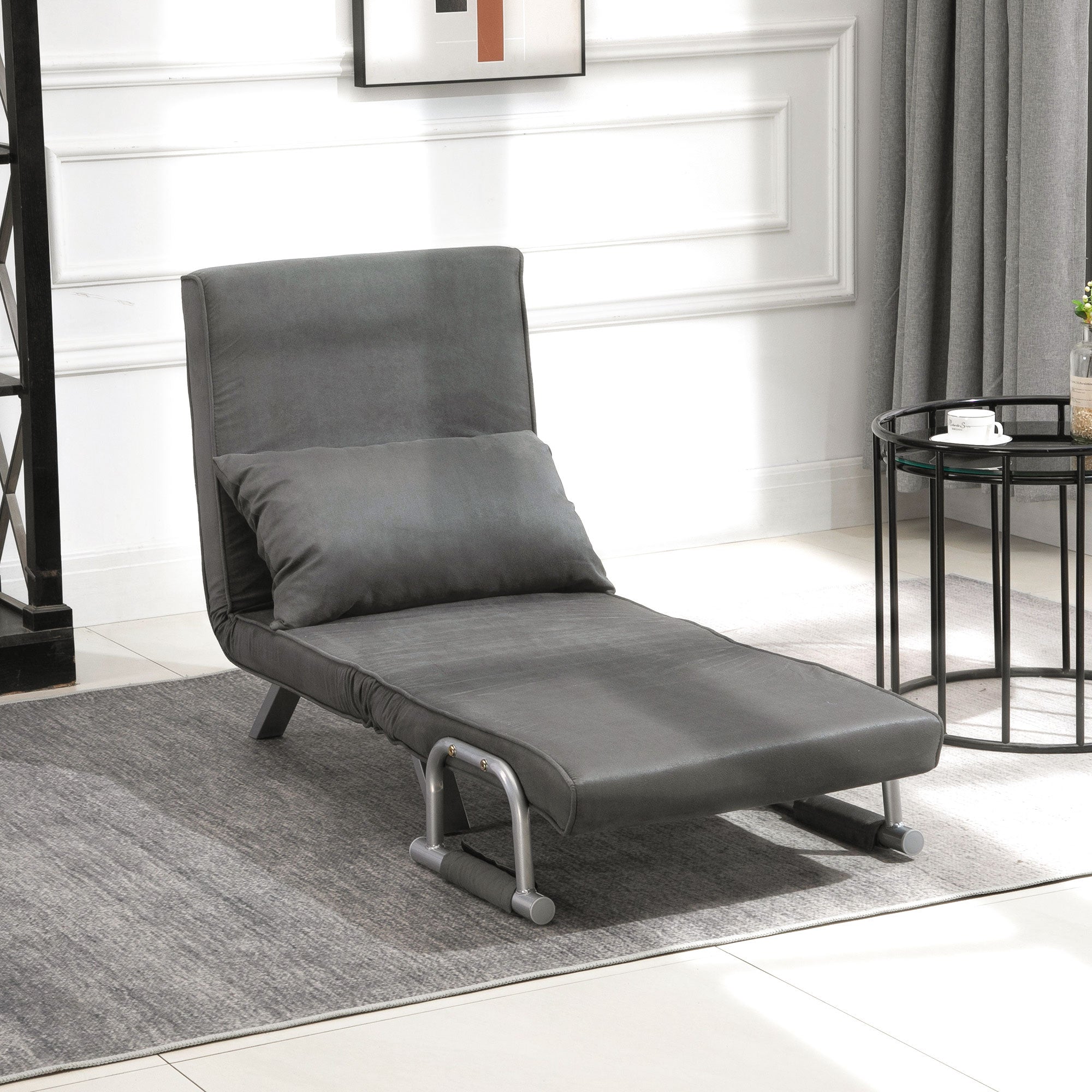 From sitting, to sleeping easily with this single couch bed. The four-in-one transforms from a single armchair to a reclining chair, a floor chair or a comfortable bed - use it how you like. The back sets between five different positions - paired with the inner padding and faux suede upholstery, this is a comfortable and soft piece you'll love using day and night. Comes complete with a pillow for extra comfort and support.