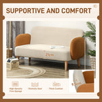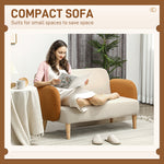 Two-Seater Velvet-Feel Mid Century Sofa - Cream/Orange