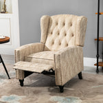 Let this reclining chair bring retro style and comfort into your home. Metal studding and tufting adopt a vintage look, with thick sponge filling for comfort. The metal frame is sturdy and solid in everyday use, with the back manually reclining to either 90° or 165°. It's finished with carved rubber woods, keeping the recliner chair supported and stable.
