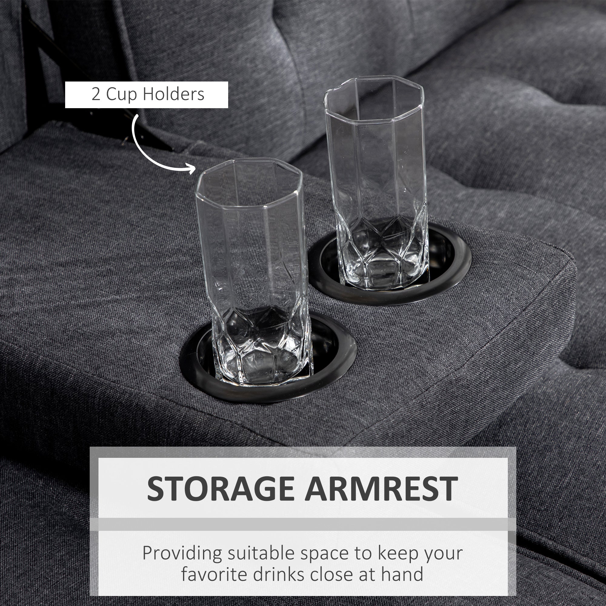 Upholstered Click Clack Sofa Bed, Linen-Feel 3 Seater Sofa Bed with Storage and Cupholders, Grey