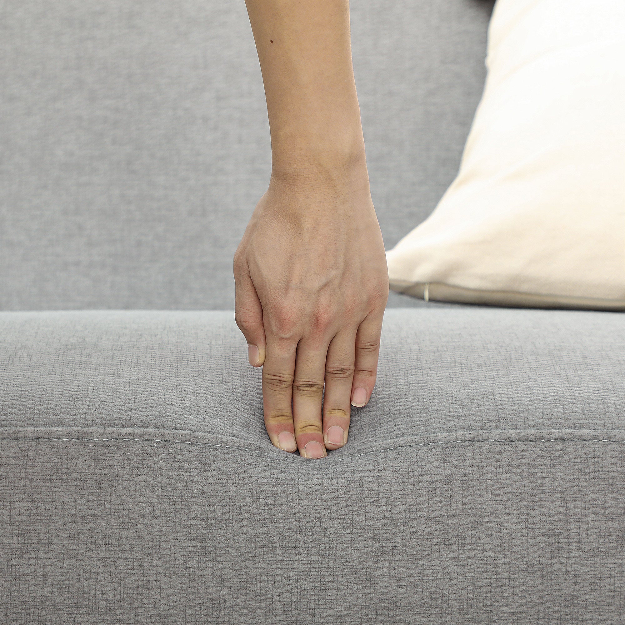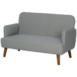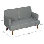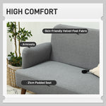 Velvet Feel Fabric 2 Seater Sofa, Small Sofa Loveseat with 21cm Thick Padding and Wood Legs, Grey