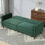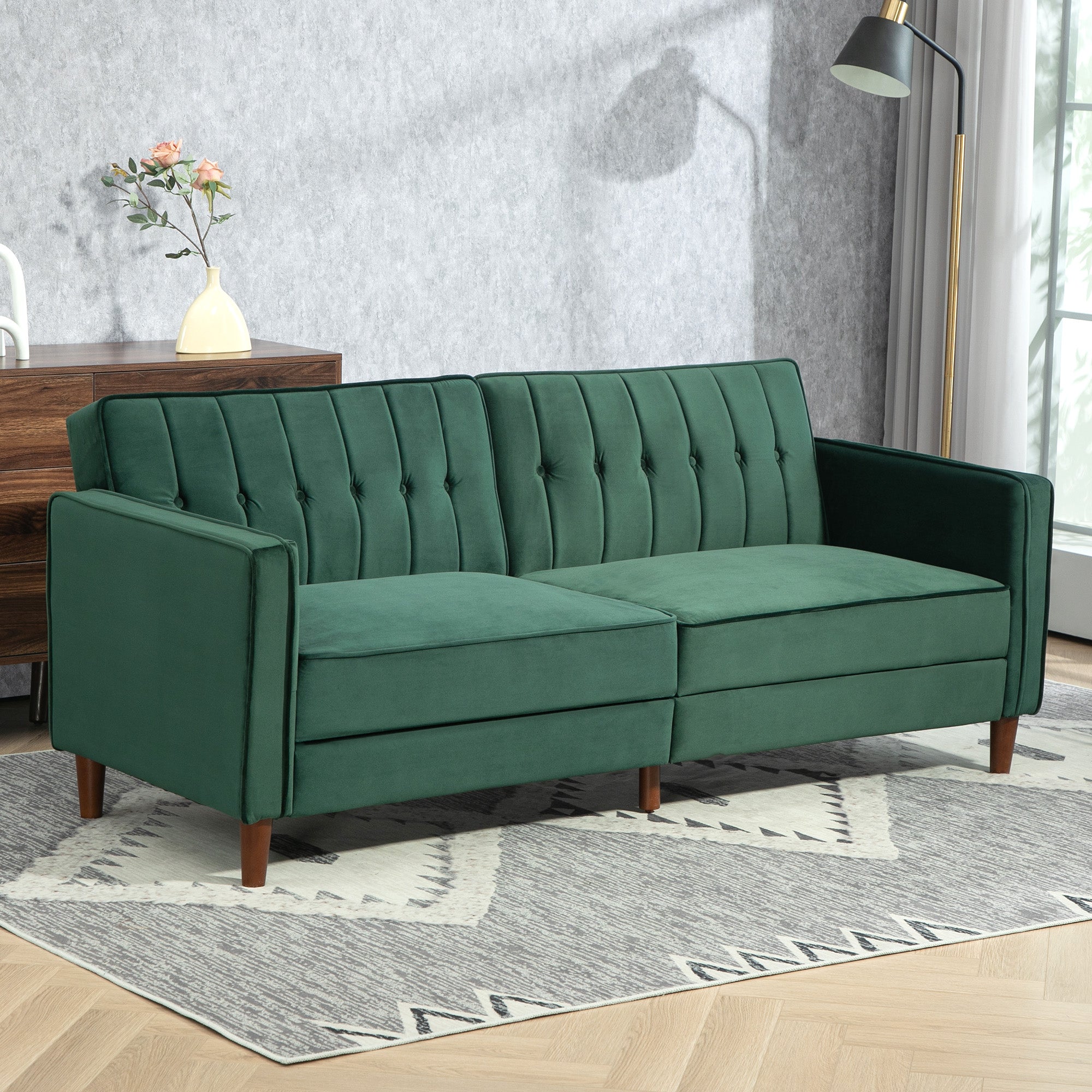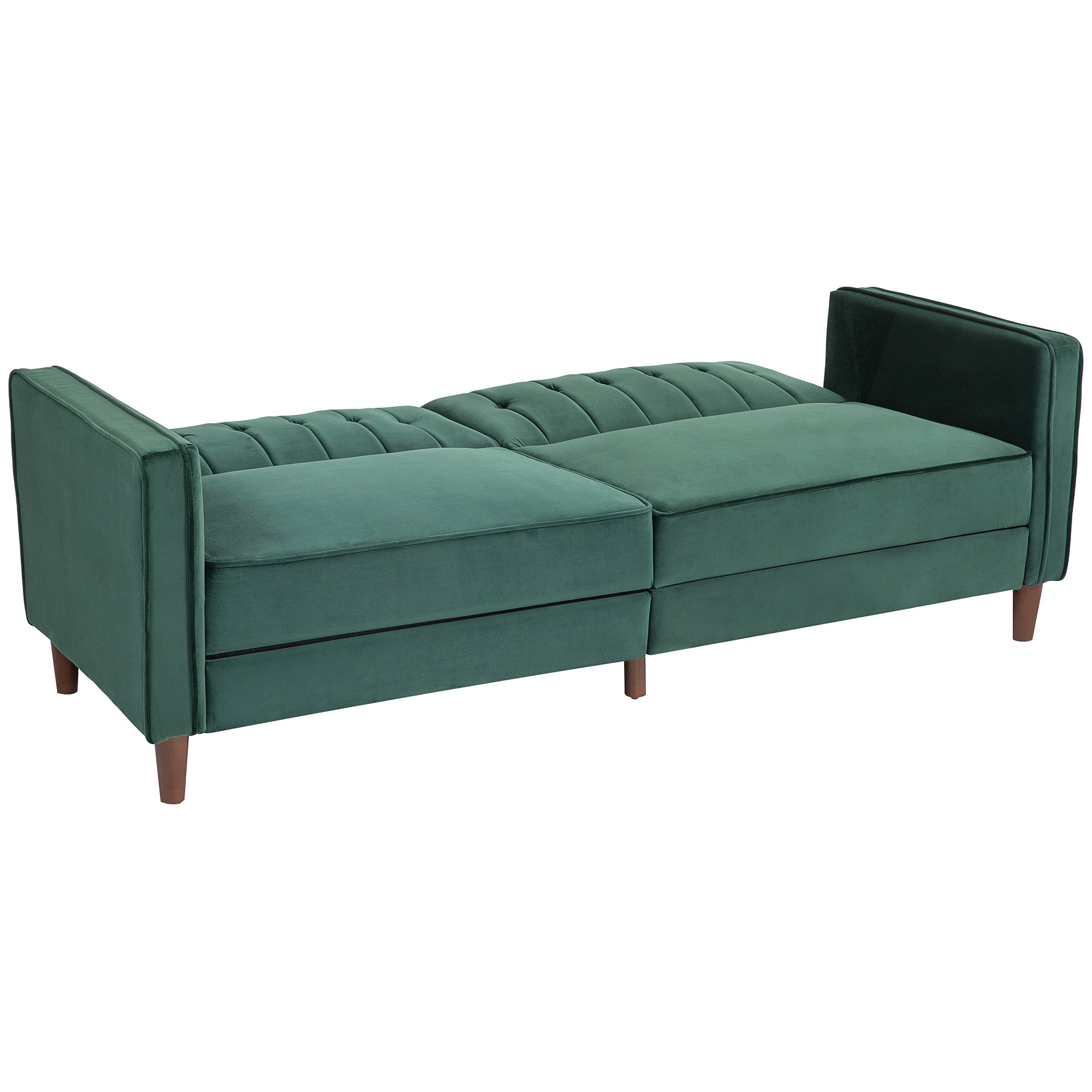 Velvet-Feel Three-Seater Sofa Bed - Green