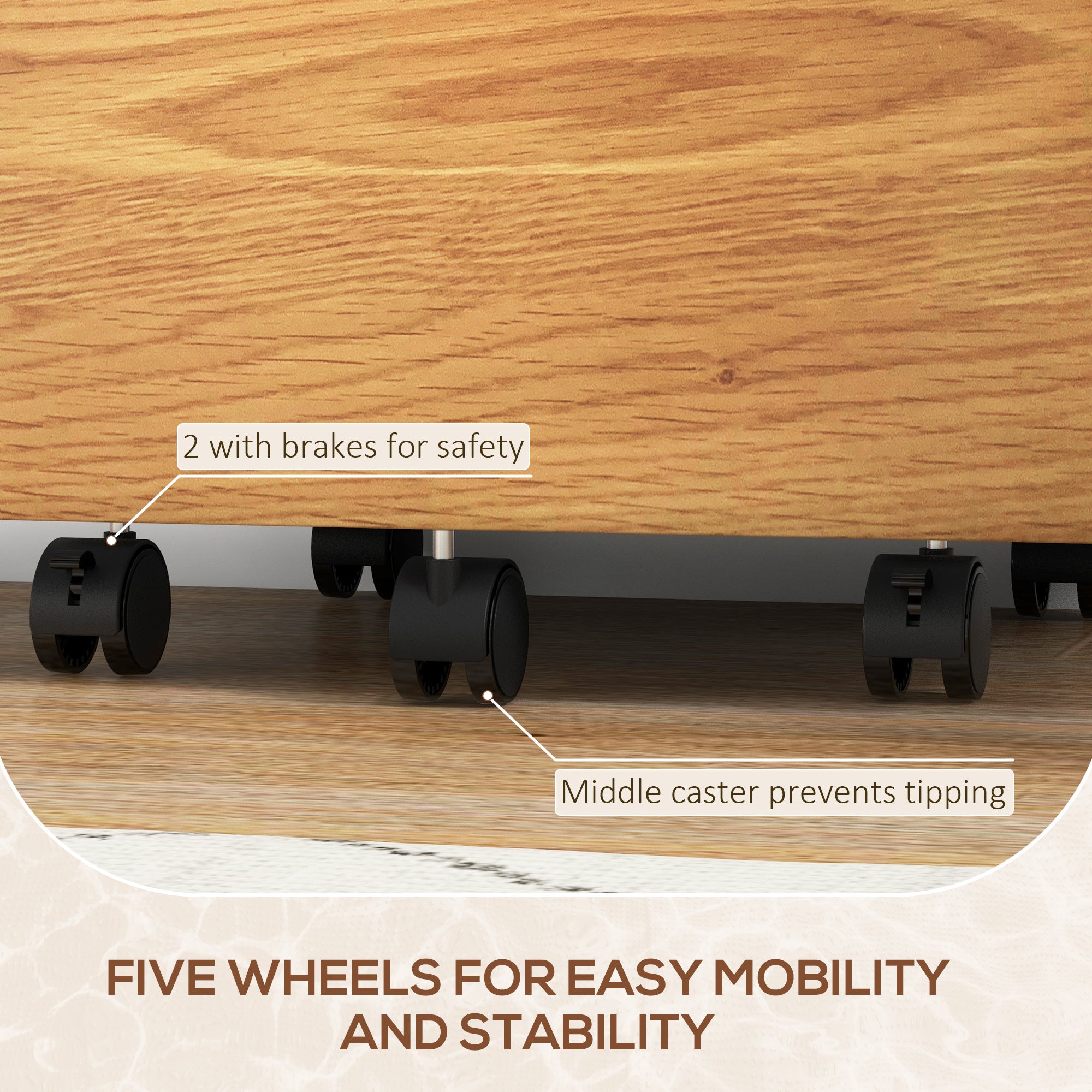 Keep your workspace tidy and stylish with this lockable filing cabinet. It comes with a small drawer and a large drawer for file storage; adjustable bars in the large drawer to hold A4/letter-sized files. The lockable bottom drawer ensures your documents stay secure, with two keys included. Office drawers with compact design, enhanced with five wheels for easy mobility, allows it to fit snugly under your desk.