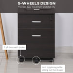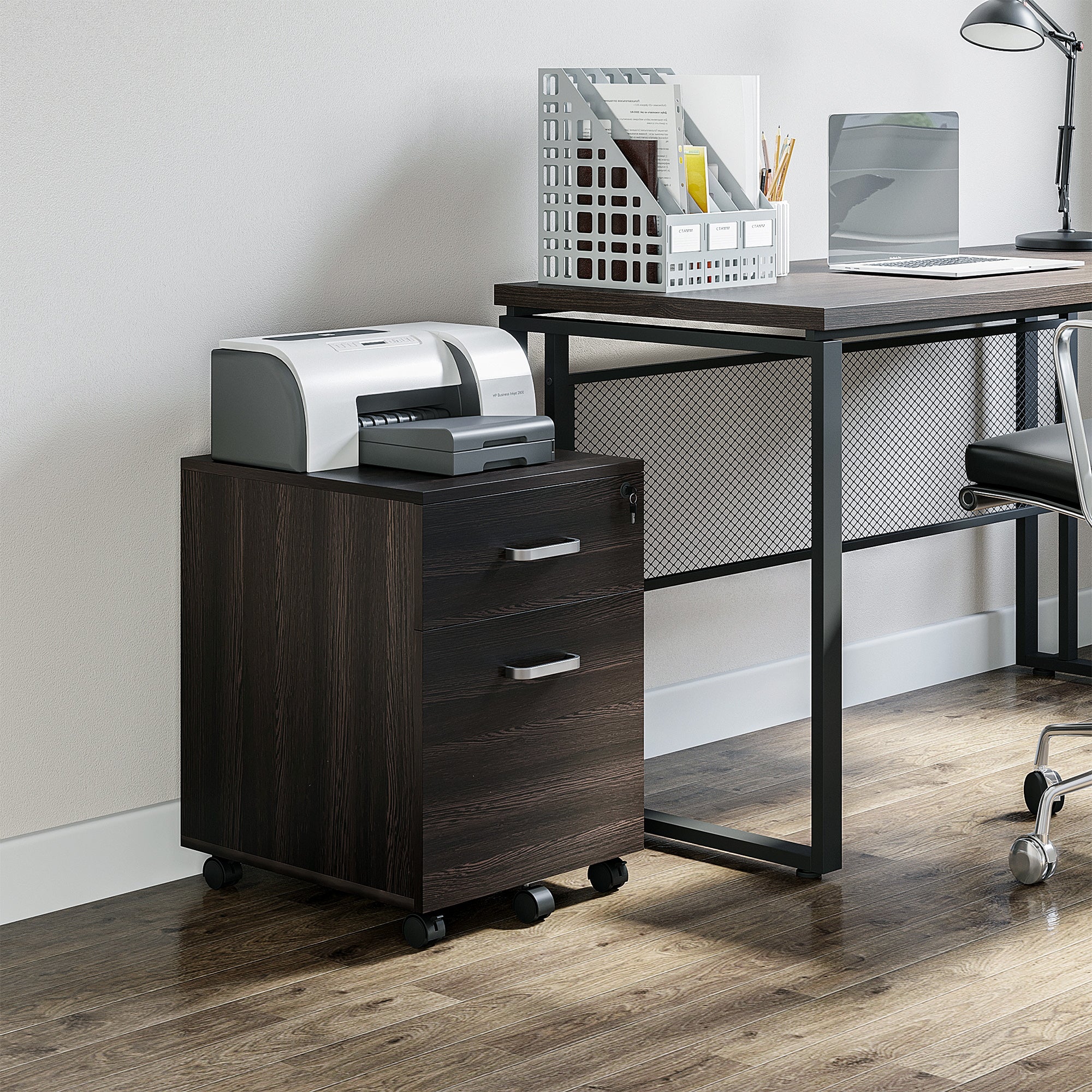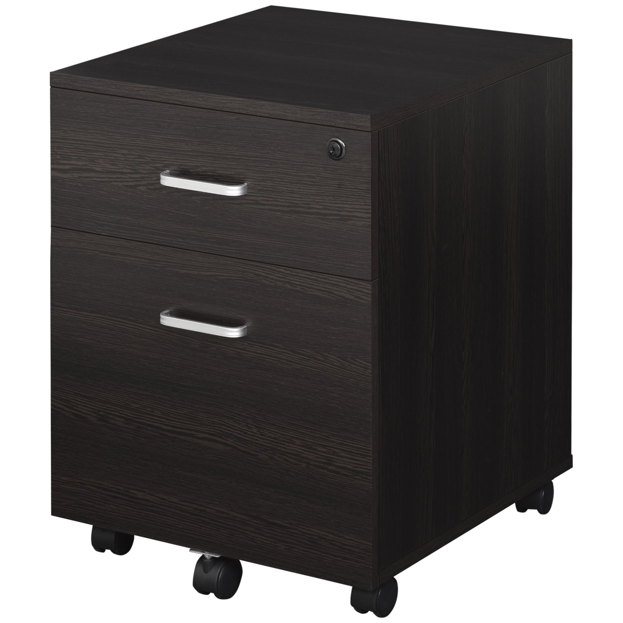 2-Drawer Locking Office Filing Cabinet w/ 5 Wheels Rolling Storage Hanging Legal Letter Files Cupboard Home Organisation Black Wood Grain