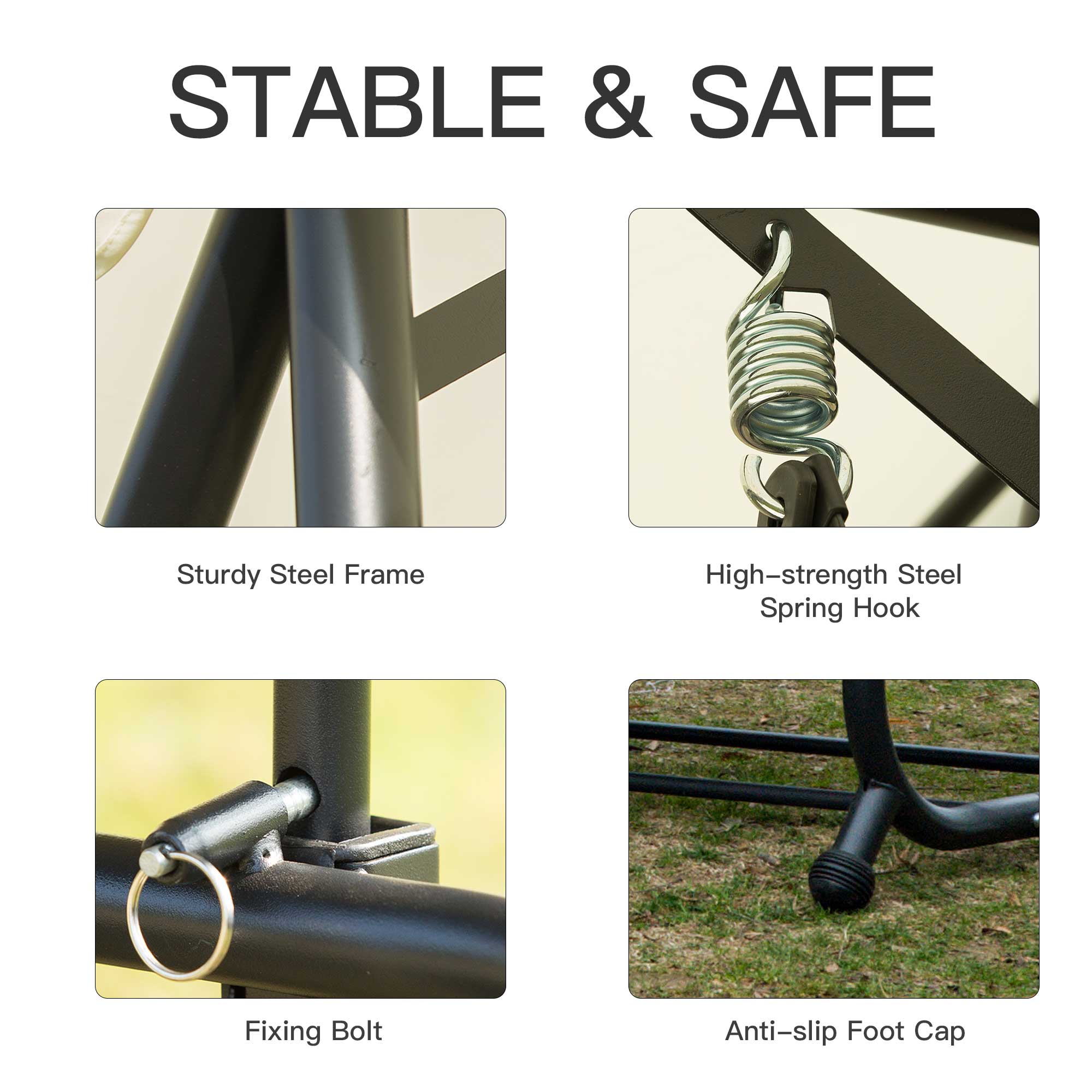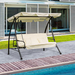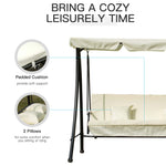 3 Seater Swing Chair 2-in-1 Hammock Bed Patio Garden Swing Seat Bed with Adjustable Canopy and Cushions, Cream