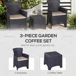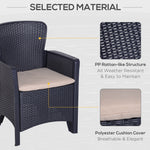 3 PCS Rattan Effect Garden Bistro Set 2 Chairs & Coffee Table Set with Cushion Patio Lawn Balcony Furniture - Dark Brown