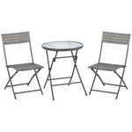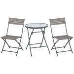 3 Pieces Rattan Bistro Set, Wicker Folding Garden Furniture Set with Glass Top Coffee Table and Chairs for Outdoor, Patio, Balcony, Grey