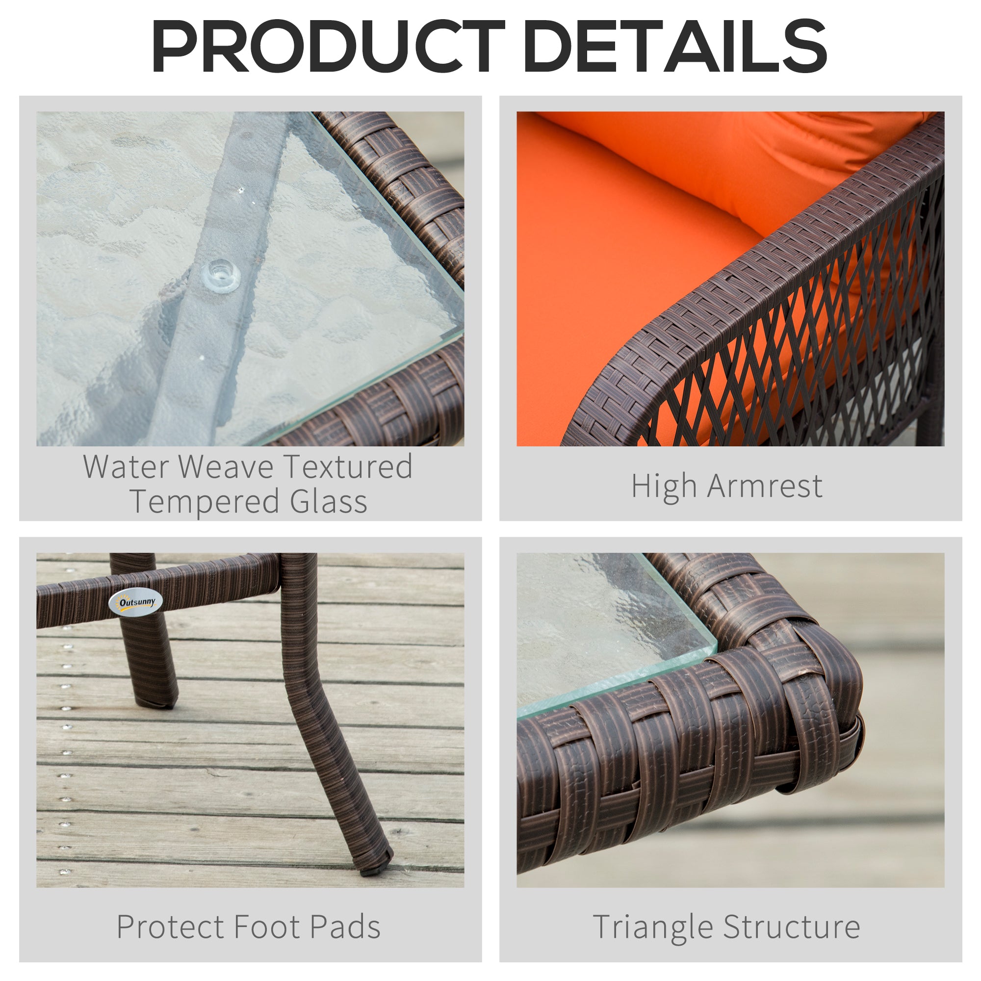 3 Pieces Rattan Bistro Set with Glass Top Coffee Table, Chairs and Cushions for Outdoor, Patio, Balcony, Orange