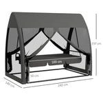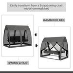 Three-Seater Convertible Swing Chair/Bed, with Curtained Canopy - Grey