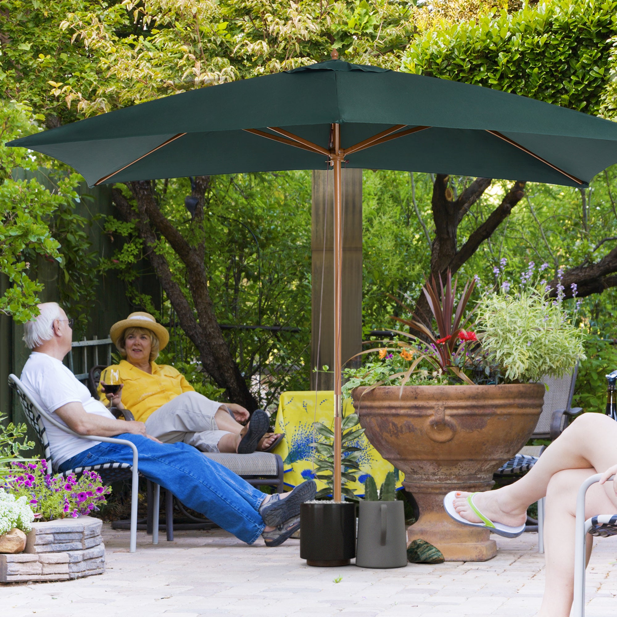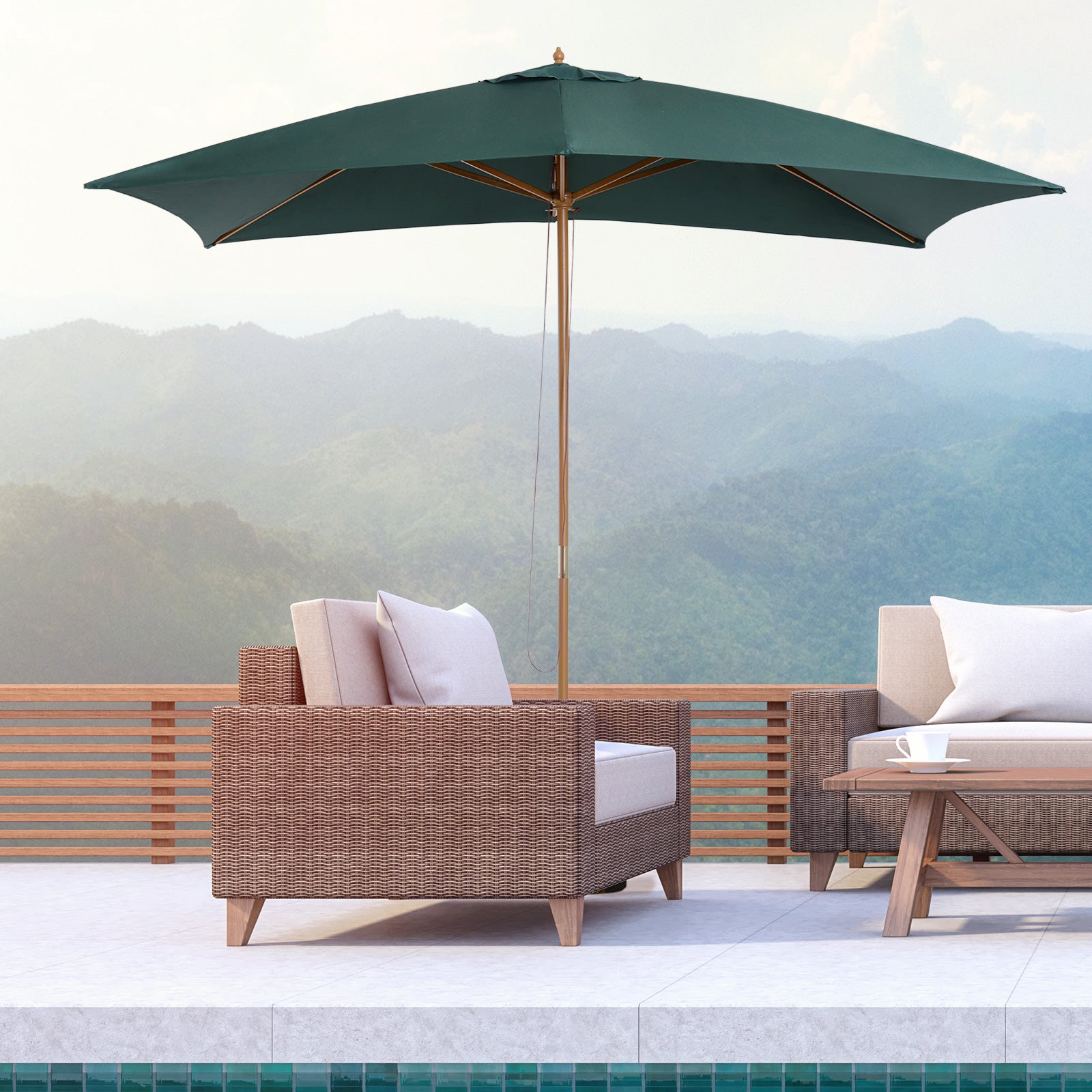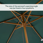 2 x 3m Wooden Garden Parasol Umbrella Outdoor Sun Shade Canopy, Green