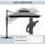 3 x 3(m) Aluminum Sun Square Canopy Top w/ Adjustable Pole Angle Dark Grey
