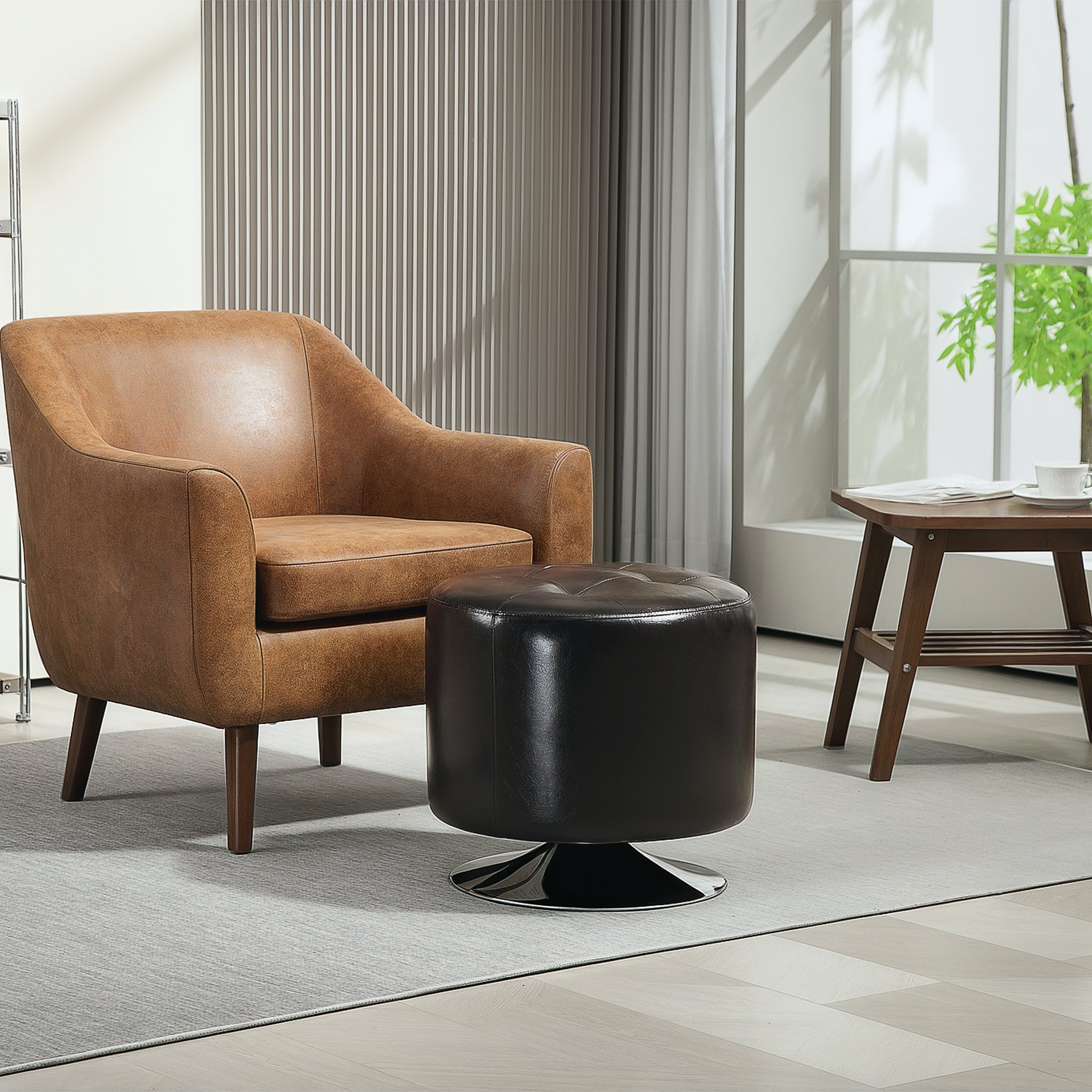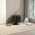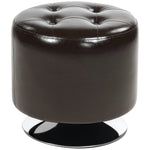 360° Swivel Foot Stool Round PU Footstool with Thick Sponge Padding and Solid Steel Base, Brown