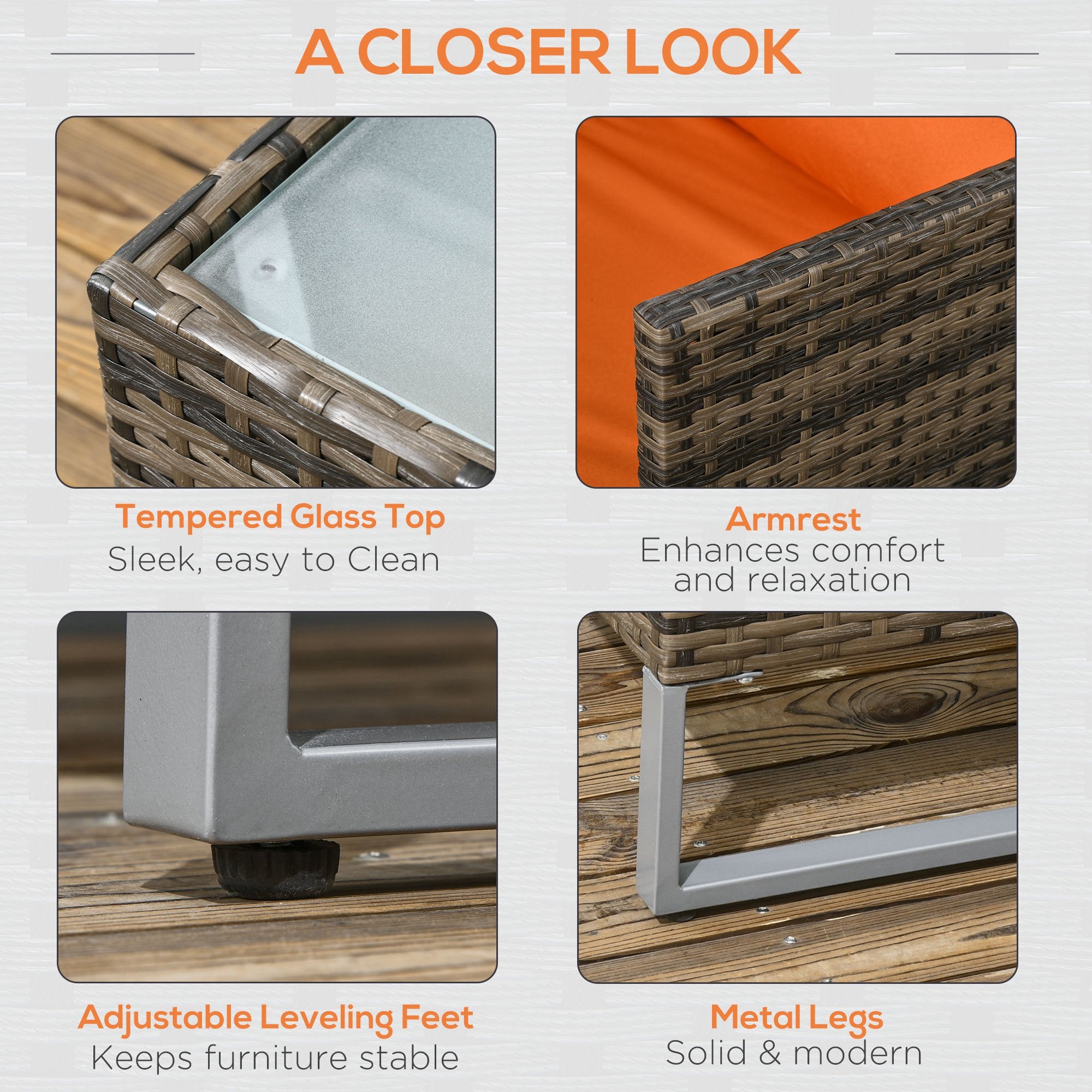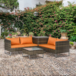 Four-Piece Rattan Sofa Set, with Storage Table - Orange/Brown