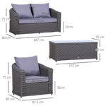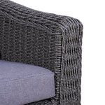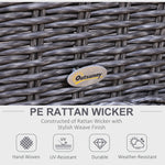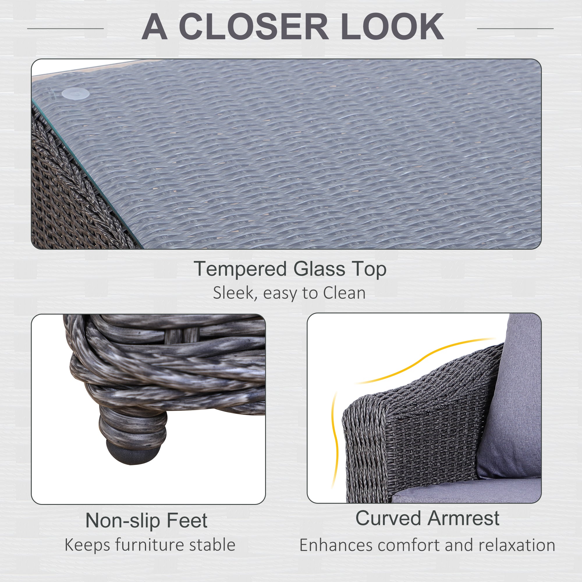 Deluxe Round PE Rattan Garden Furniture Set, Fully-assembly Outdoor Sofa Set with Armchair, Loveseat, Glass Top Coffee Table, Aluminium Frame, Cushion, Grey