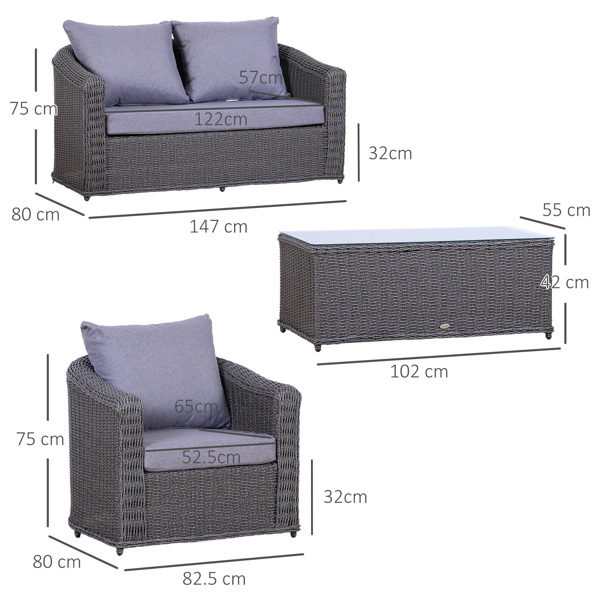 Try out this chic garden sofa set. Tough, stable and durable for regular use outdoors. Thick fitted seat cushions are placed on all the seats so youll be sitting comfortably, With a thick tempered glass top on the table for a sleek look which can be cleaned in an instant, this conservatory furniture is finished with foot pads to keep everything level and protect your floor at the same time. A great addition for any patio, conservatory and garden.