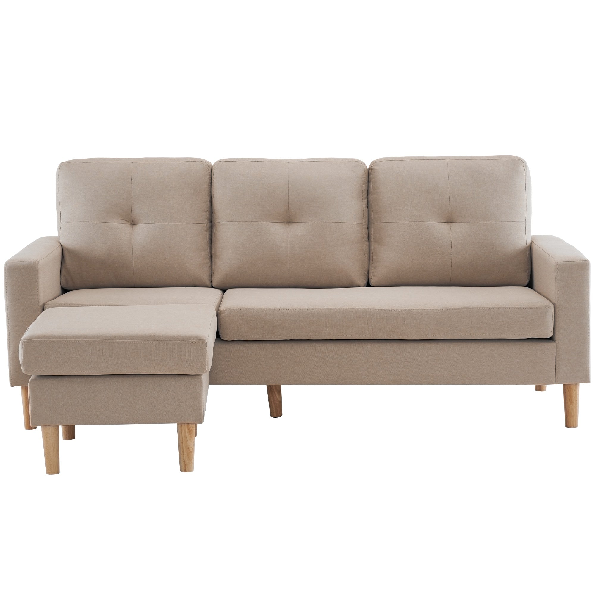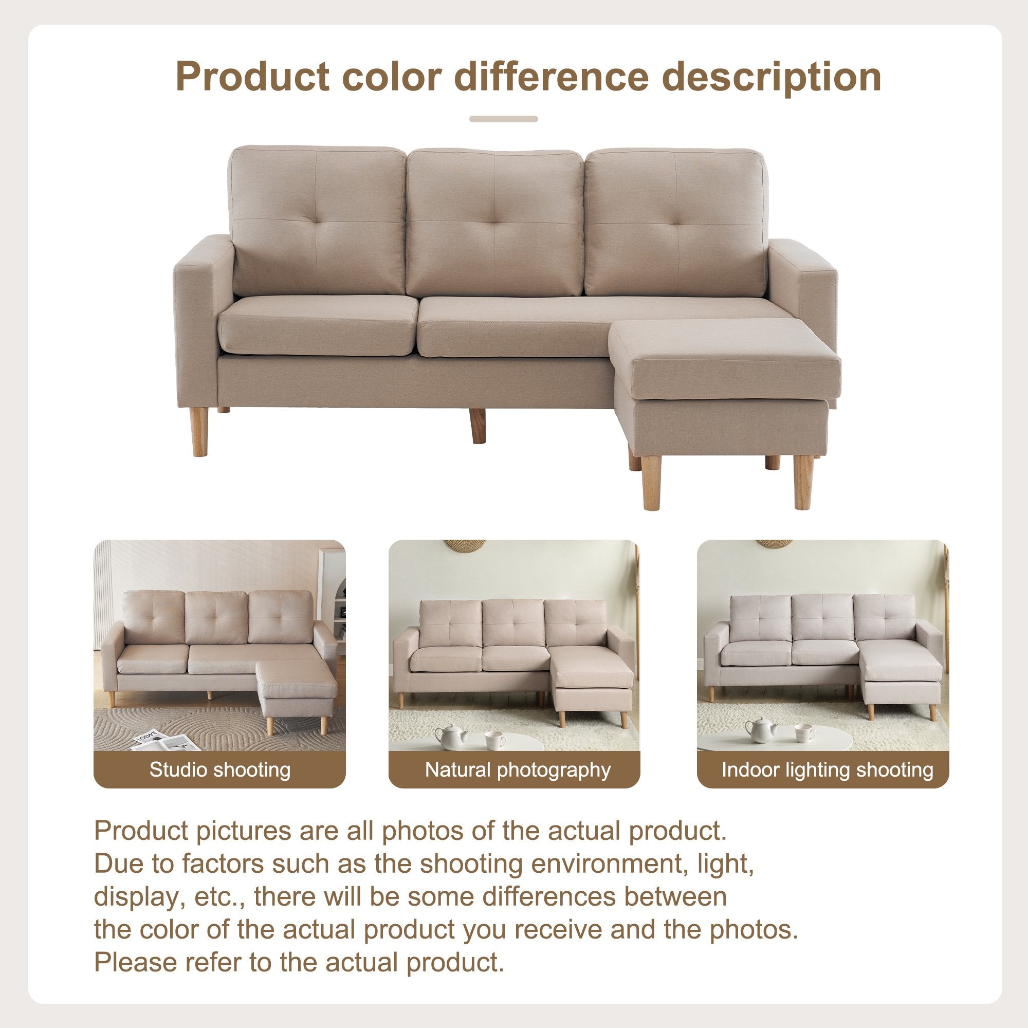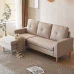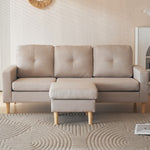 6.5ft 3 Seater Sofa Bed with Removable Footrest, Solid Wood Frame and Legs, 190x76x84 cm, Beige
