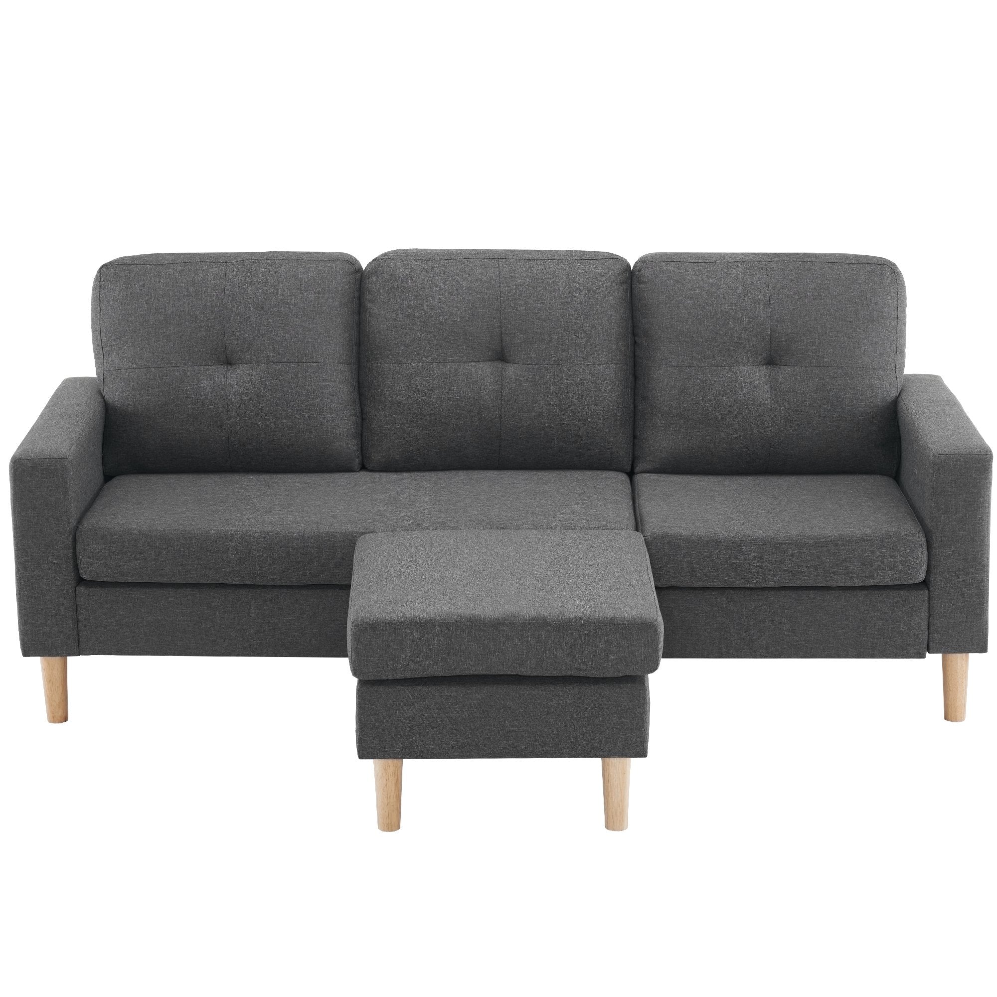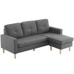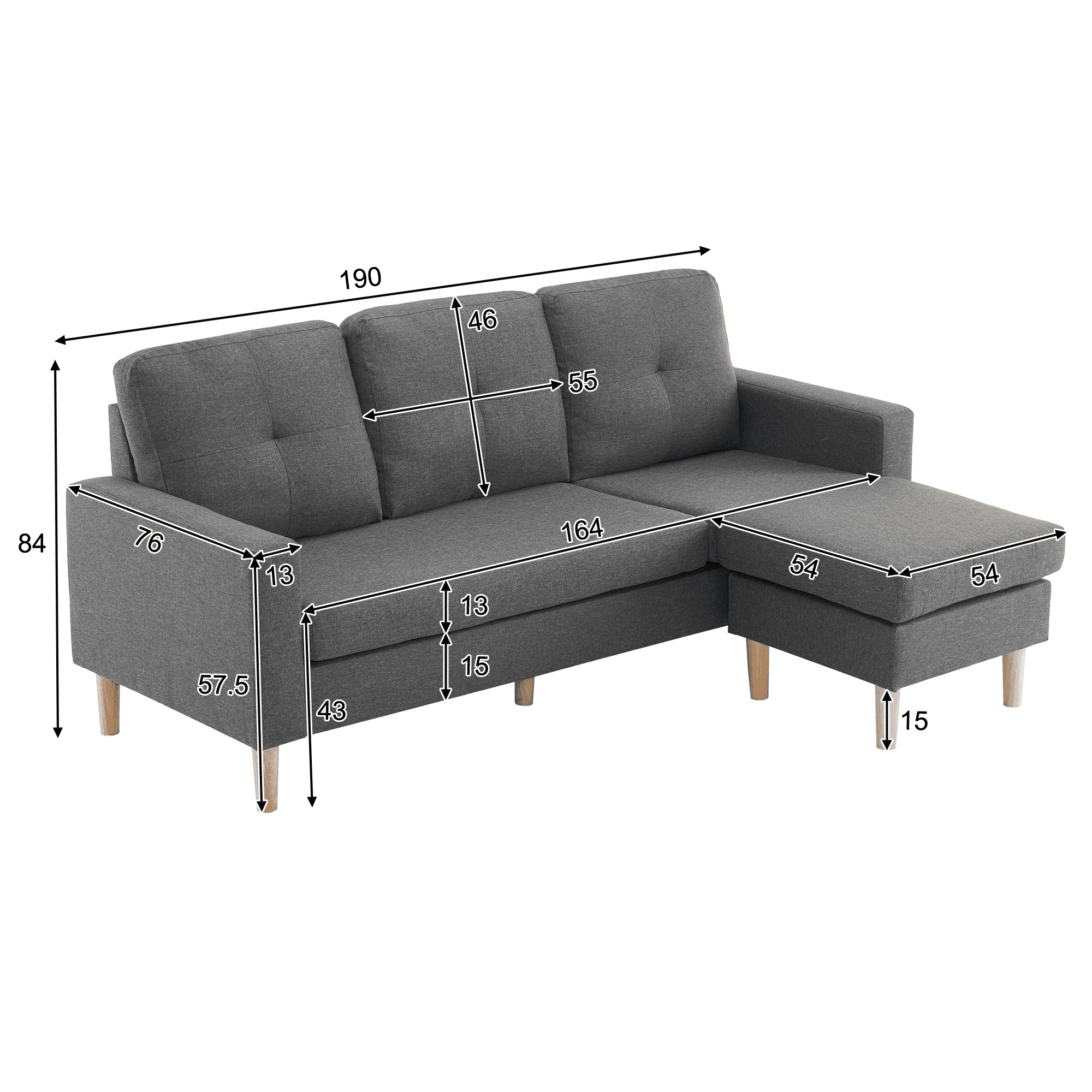 6.5ft Multi-functional 3 Seater Sofa Bed with Removable Footrest, Solid Wood Frame, 190x76x84 cm, Grey