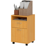 60cm Filing Cabinet with Drawer, Open Shelf, Metal Handles and 4 Wheels, Office Home Organiser Mobile Printer, Natural Wood Finish