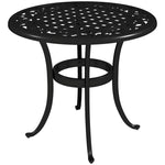 60cm Round Garden Table, Outdoor Hollow Top Design Side Table with Cast Aluminium Frame for Patio, Garden, Balcony, Black
