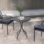 Enhance your outdoors with this end table. Slatted tabletop is stylish and practical, preventing water building up and quick drying. The galvanised steel frame, with a powder-coated finish, means a strong and supportive core. This round garden table is suitable for plenty of occasions.