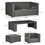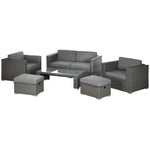 6PC Garden Rattan Sofa Set Bonzer Outdoor Furniture Patio Table Loveseat Stool Lounging Ottoman Aluminium Frame Wicker Weave Conservatory Grey