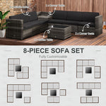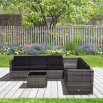 6-Seater Rattan Sofa Furniture Set W/ Cushions, Steel Frame-Grey