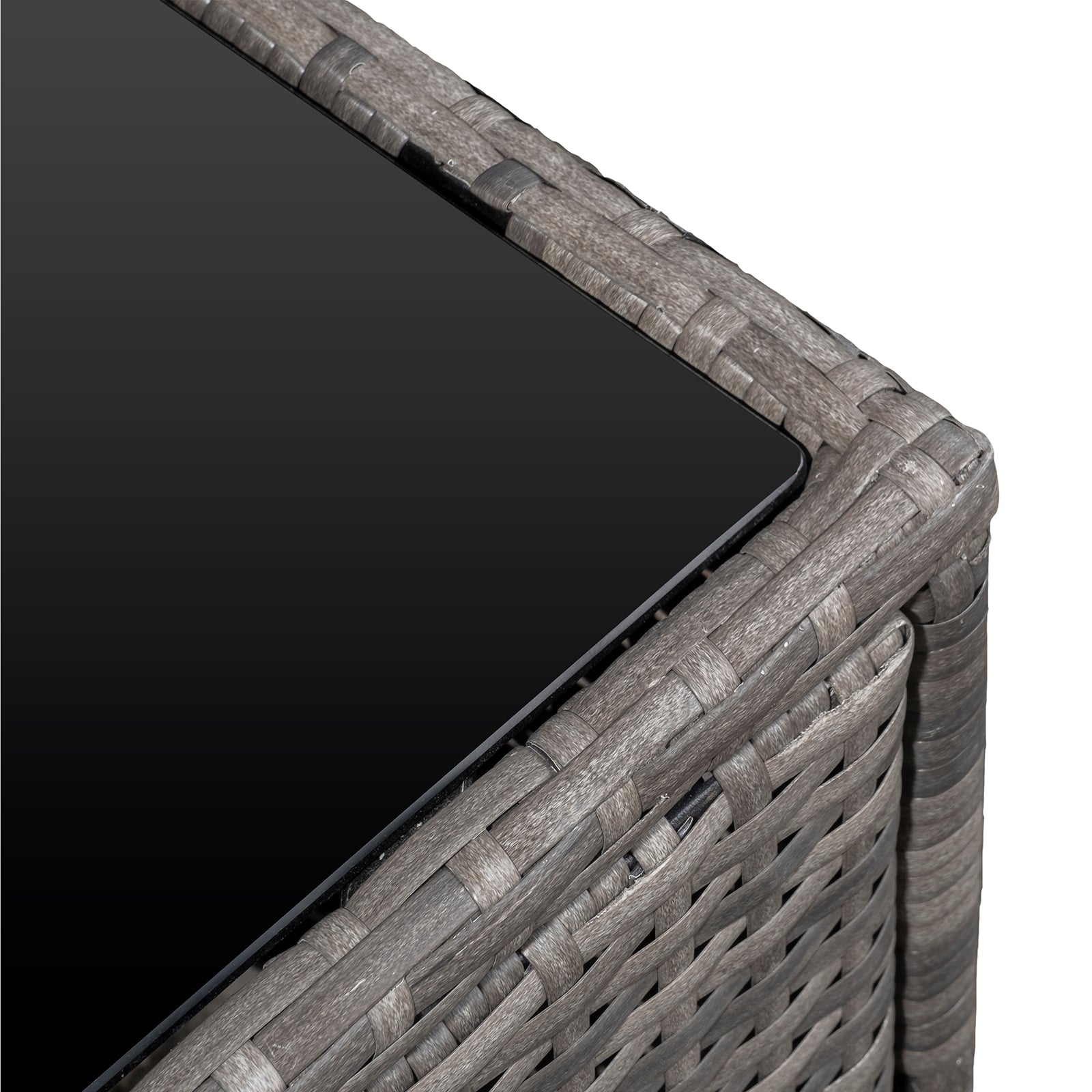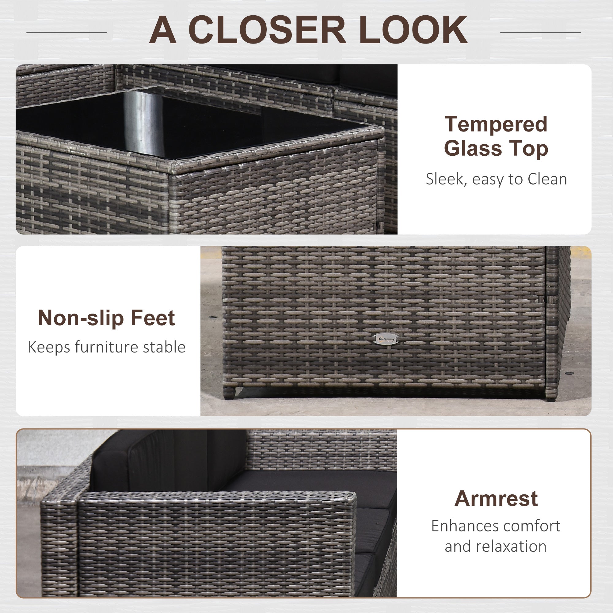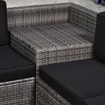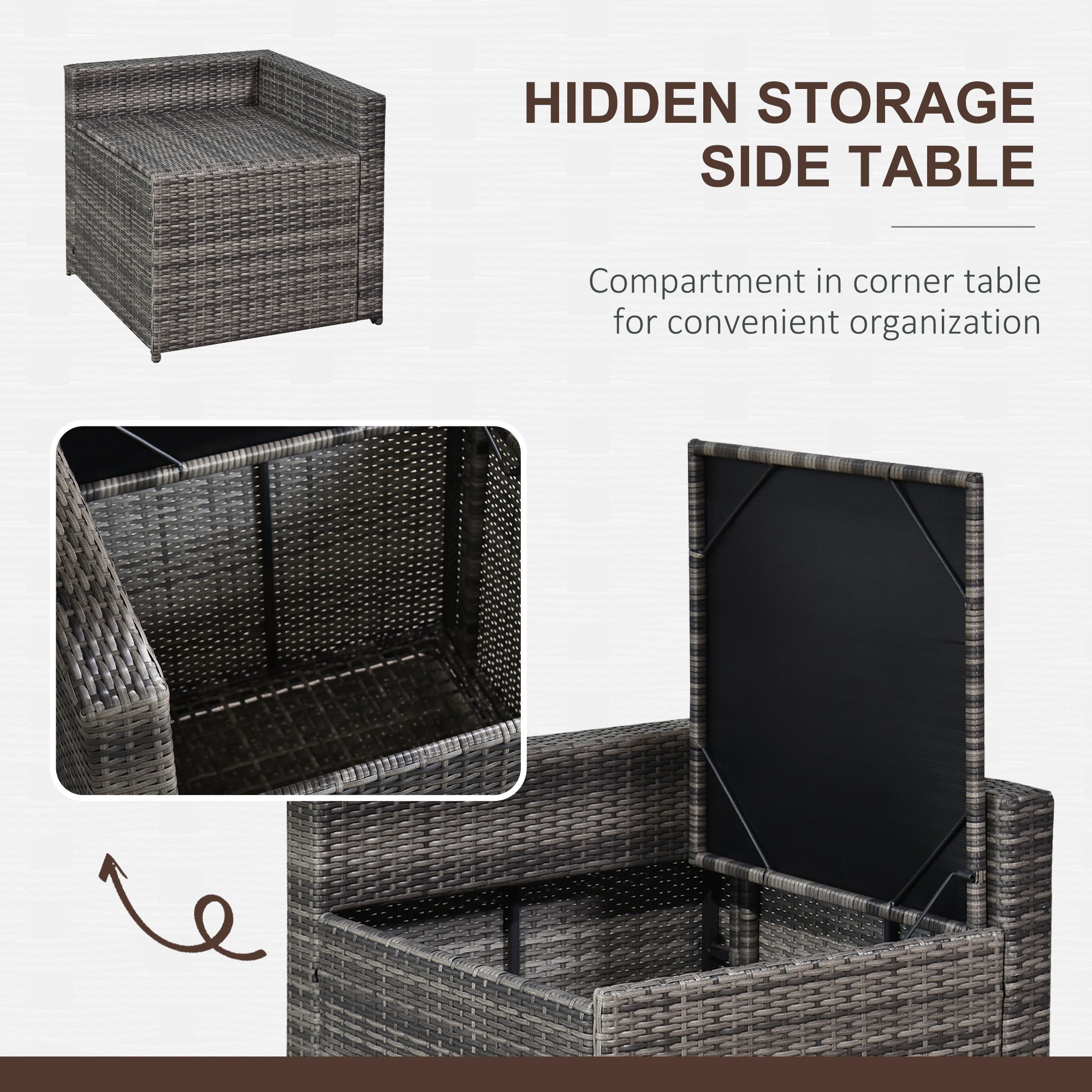 Make the most of the warm weather with this eight-piece outdoor rattan garden furniture set. Its open design is also great for combining two or more sets together in your cafx©, restaurant or business to allow you to cater to larger seating numbers and expanding your outside business revenue. Finished with a hidden storage compartment in the corner table, youll never leave the area in a mess, making it ideal for those with busy lifestyles and little time to spare.