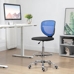 Drafting Chair, Swivel Office Draughtsman Chair, Mesh Standing Desk Chair with Adjustable Foot Ring, Armless, Dark Blue