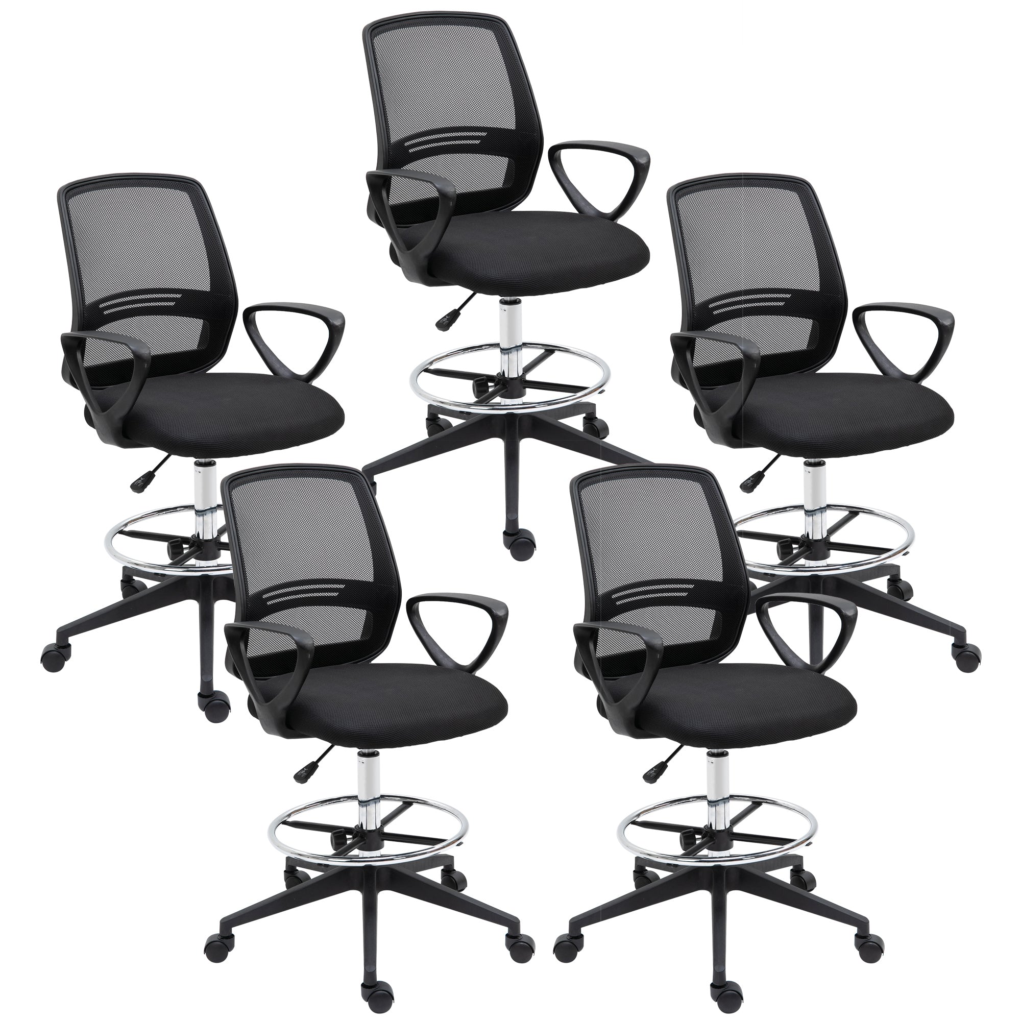 Ergonomic Mesh Back Drafting Chair, Tall Office Chair, Draughtsman Chair with Adjustable Height and Footrest 360° Swivel, Set of 5