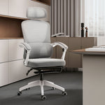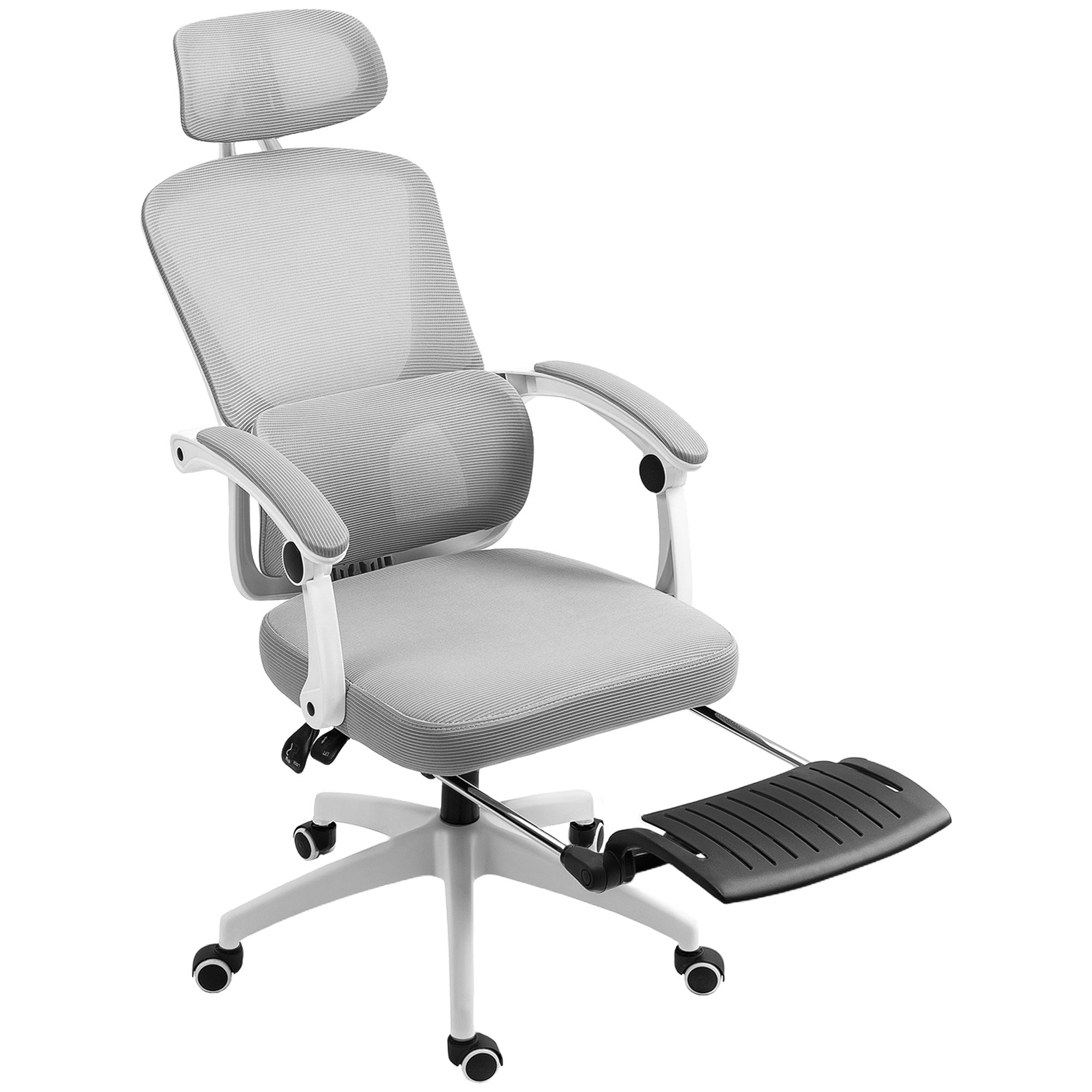 Ergonomic Office Chair, Mesh High Back Desk Chair with Adjustable Lumbar Support and Headrest, Footrest, Reclining Executive Swivel Computer Chair for Home Study, Grey