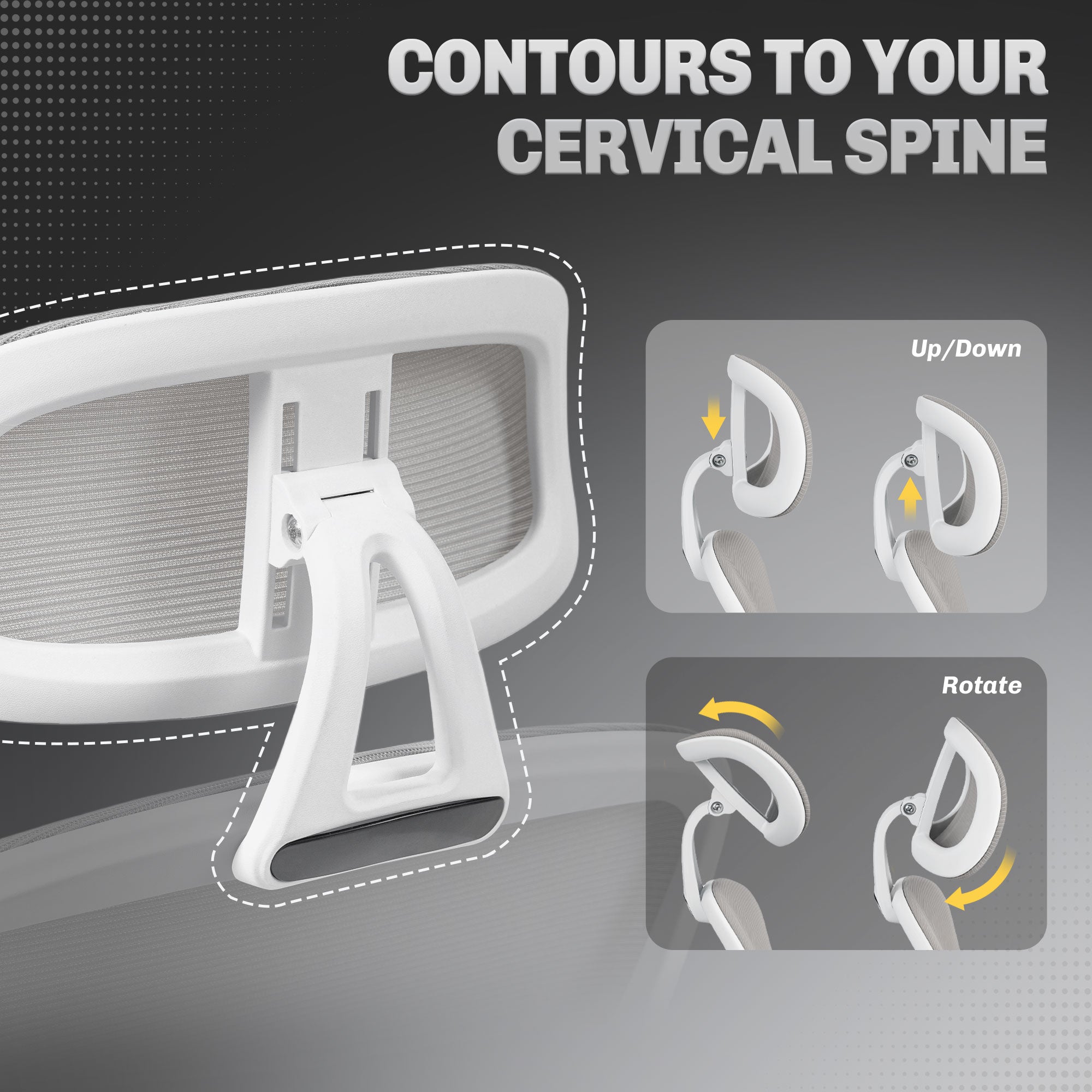 Transform your workspace with the office chair for home, designed for utmost comfort. Enjoy the luxury of adjustable lumbar support and a rotatable headrest tailored to your needs. Wrapped in breathable mesh and plush high-density foam, this office chair with footrest offers a reclining function with a footrest, ensuring long-lasting comfort in any home office or bedroom.