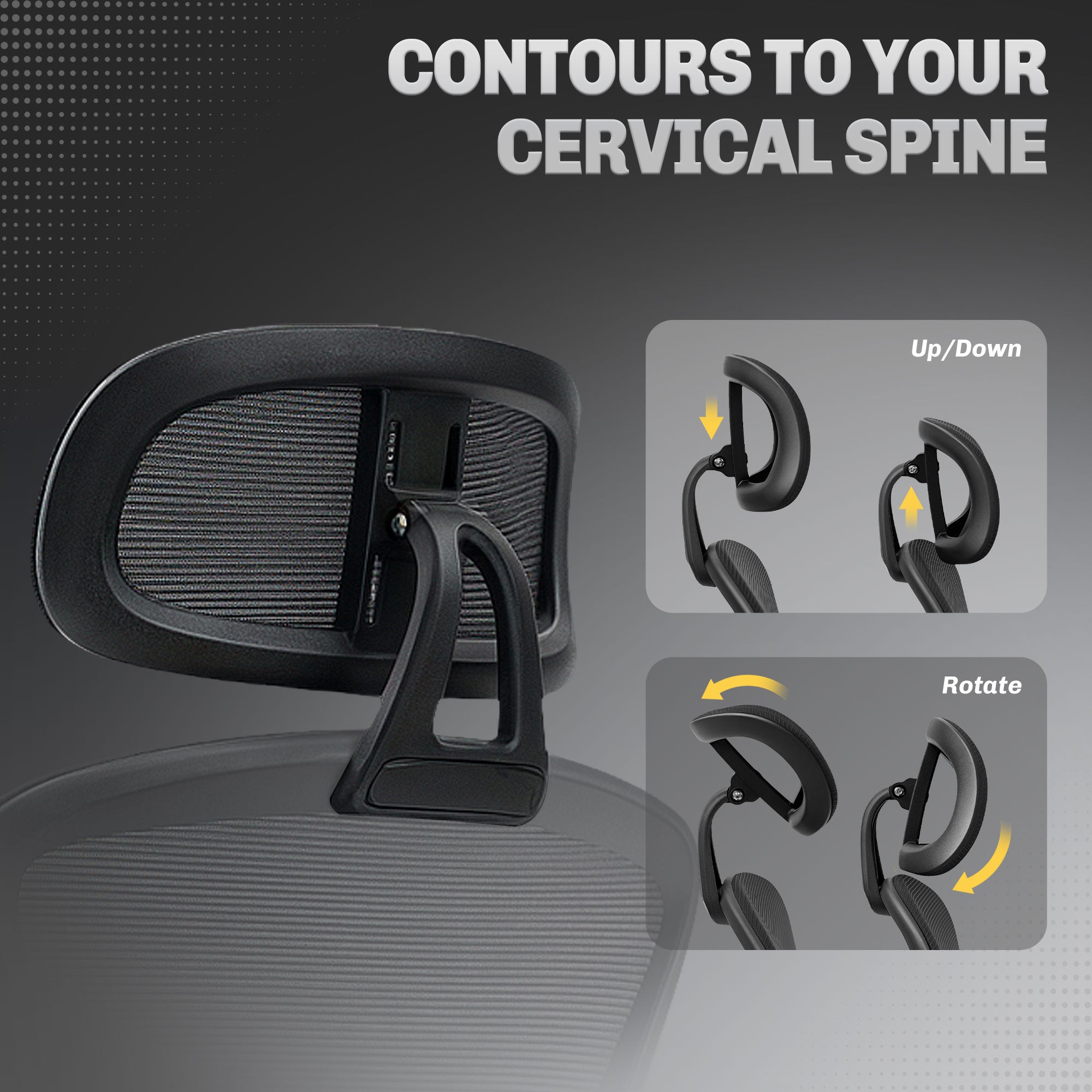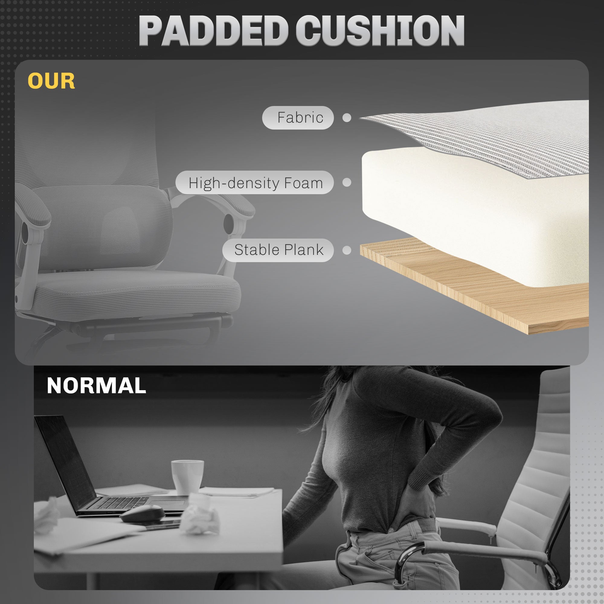 Transform your workspace with the office chair for home, designed for utmost comfort. Enjoy the luxury of adjustable lumbar support and a rotatable headrest tailored to your needs. Wrapped in breathable mesh and plush high-density foam, this office chair with footrest offers a reclining function with a footrest, ensuring long-lasting comfort in any home office or bedroom.
