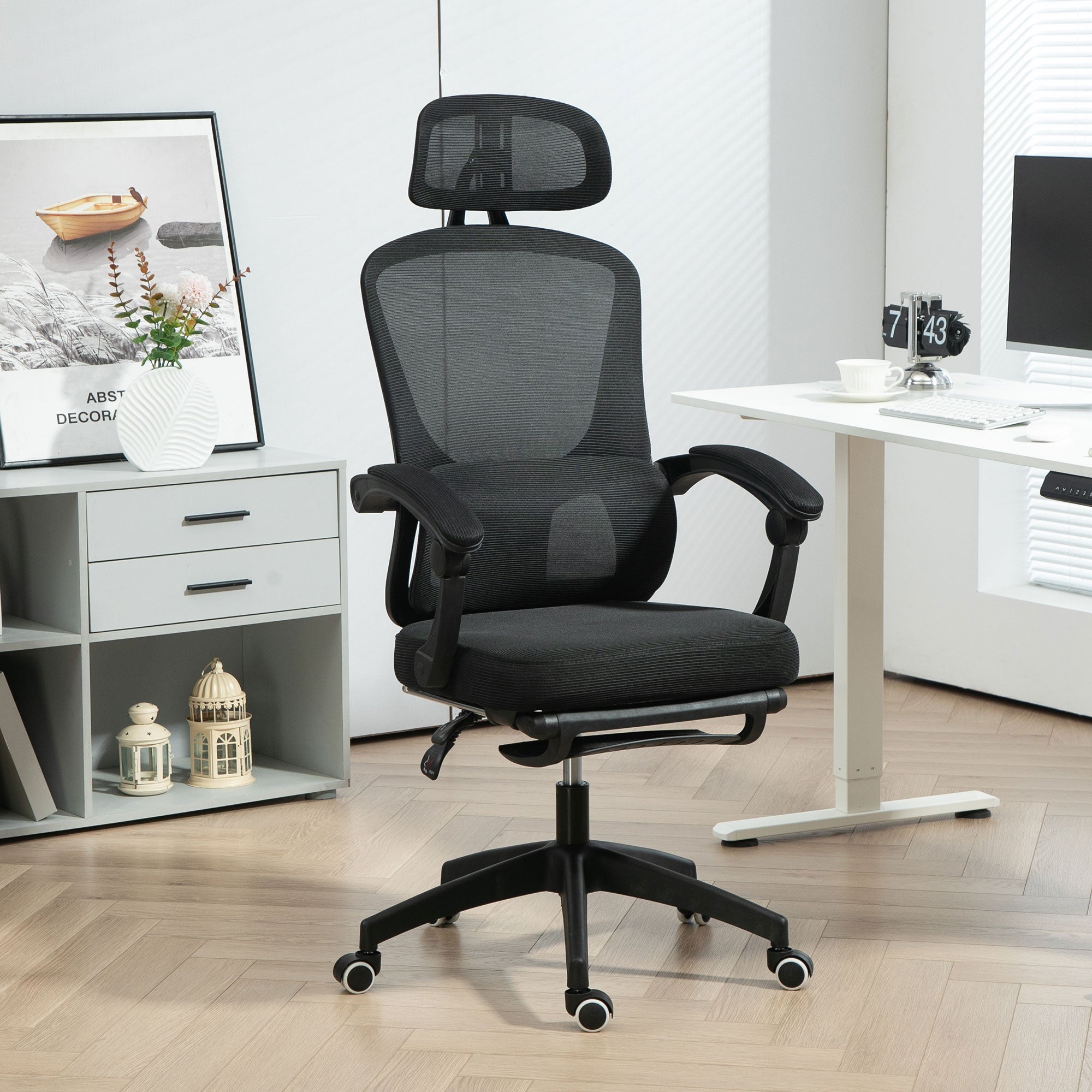 Ergonomic Office Chair, Mesh High Back Desk Chair with Adjustable Lumbar Support and Headrest, Footrest, Reclining Executive Swivel Computer Chair for Home Study, Black