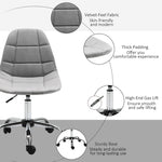 Ergonomic Office Chair with Adjustable Height and Wheels Velvet Executive Chair Armless for Home Study Bedroom Grey