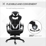 Fulfil your need for some serious style with this gaming chair with footrest. It's fitted with thick sponge for comfort and wrapped in sleek faux leather with contrasting panels. Comfortable in design, it features a high back, armrests, a five-wheel base and can swivel around 360°. Whether it's work or play, the gaming chair for adults is a good choice.