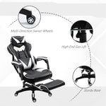 Computer Gaming Chair, Racing Desk Chair with Lumbar Support and Footrest, PU Leather Gamer Chair with Headrest and Swivel Wheels for Home, White