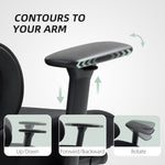 Headrest rotates and adjusts height, 3D armrests adjust forward/backward, up/down and rotating