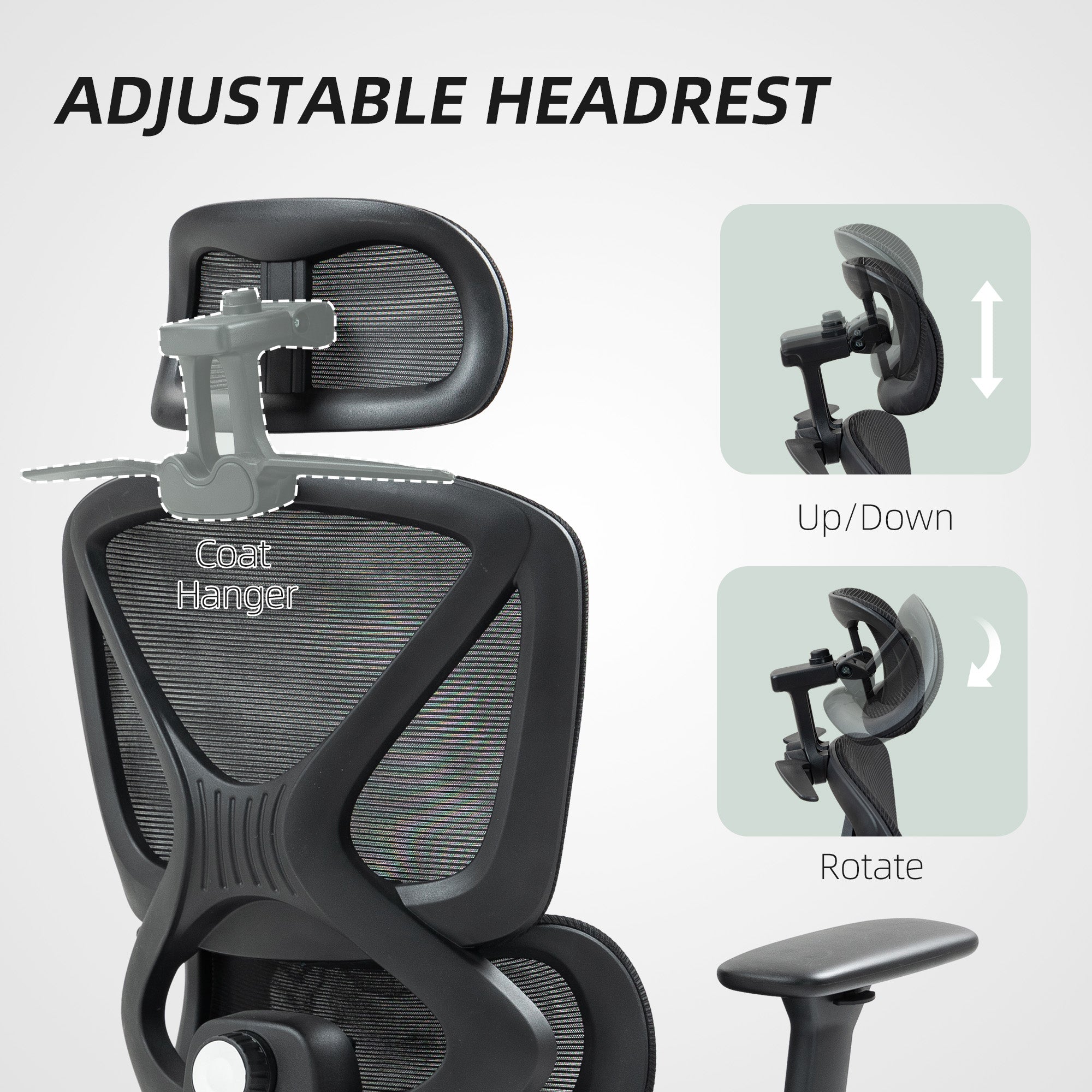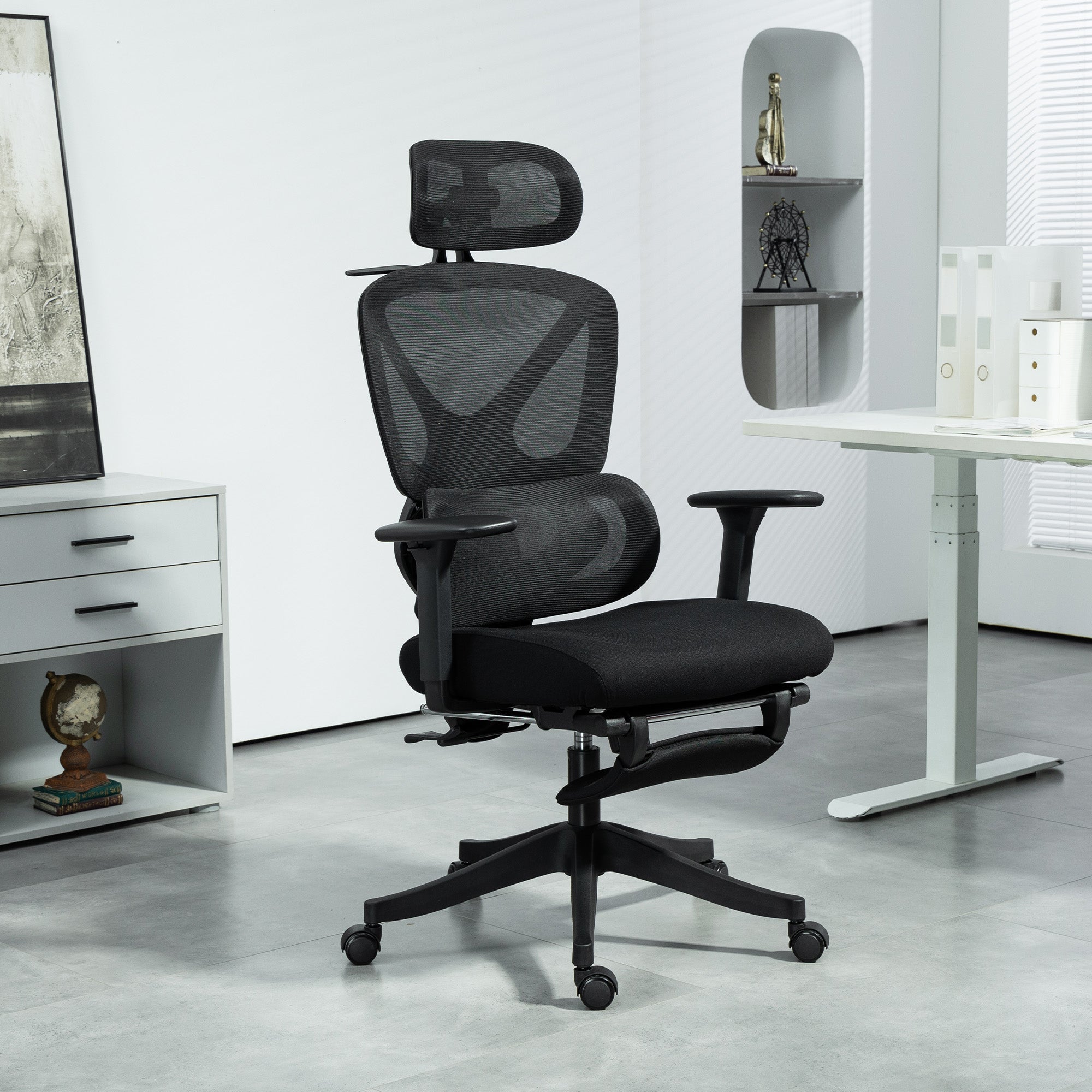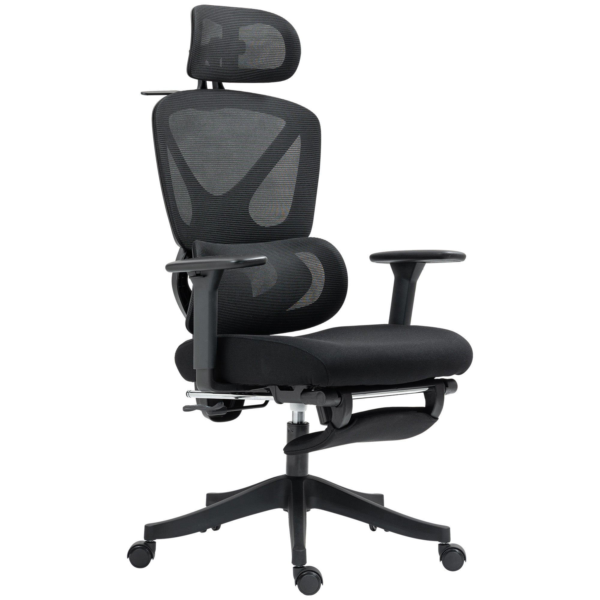 All-day working comfort and support with this ergonomic chair. Enjoy the customisable headrest and lumbar support - set to the positions you want. Filled with high-density foam for plenty of comfort, with mesh fabric for breathability. The back reclines to a maximum 135° angle - paired with the manual legrest to elevate and relax the whole body. Complete with five wheels to move around easily.