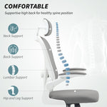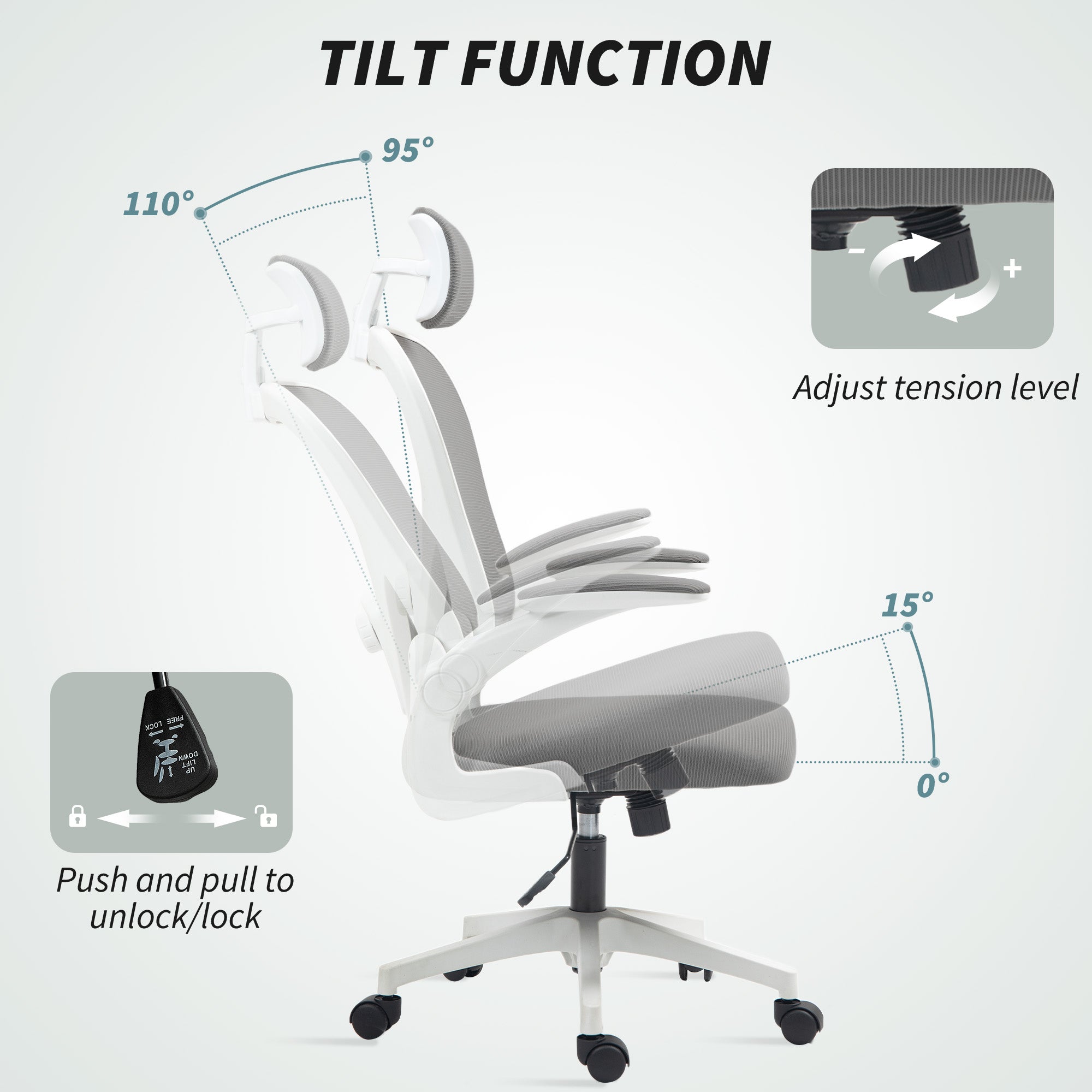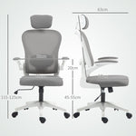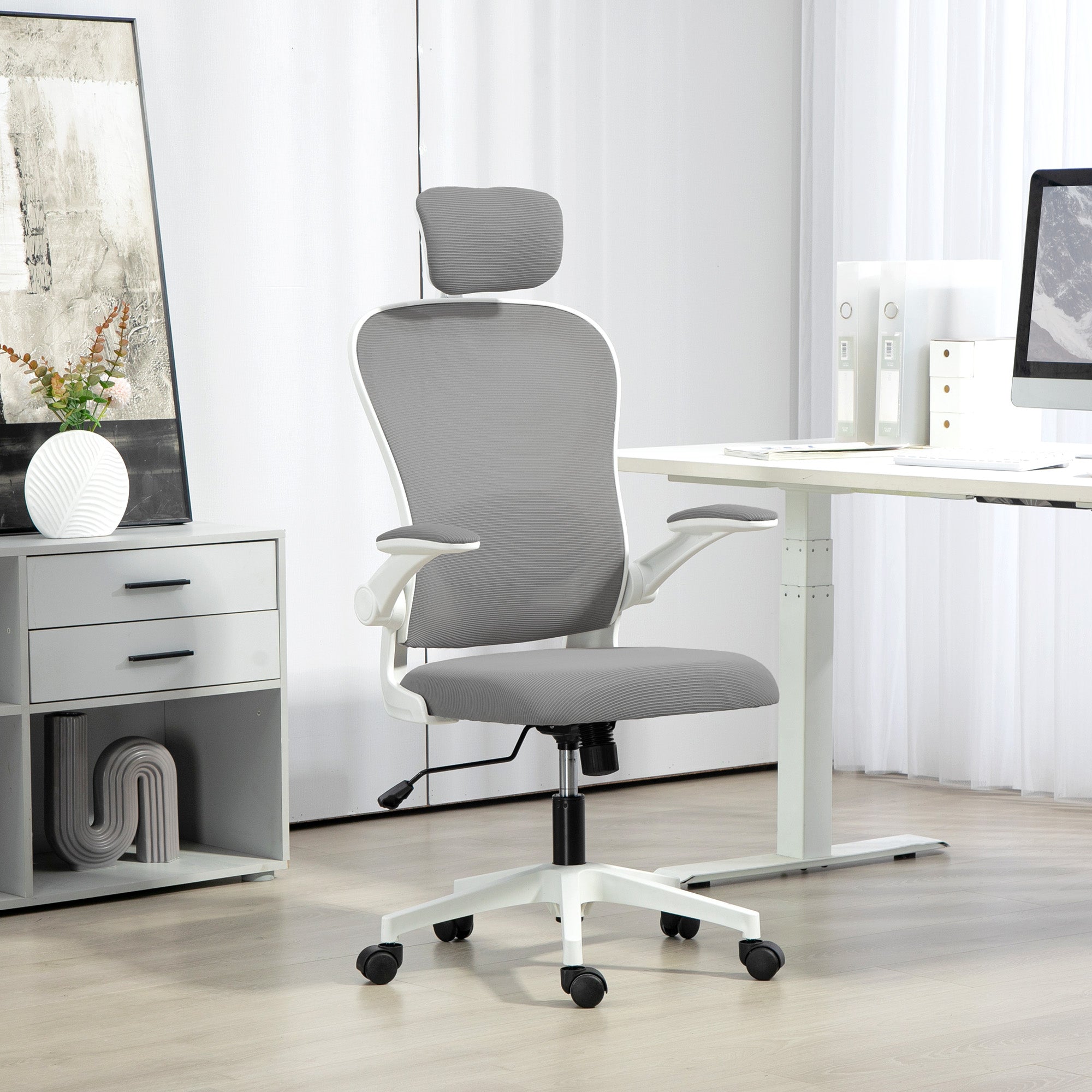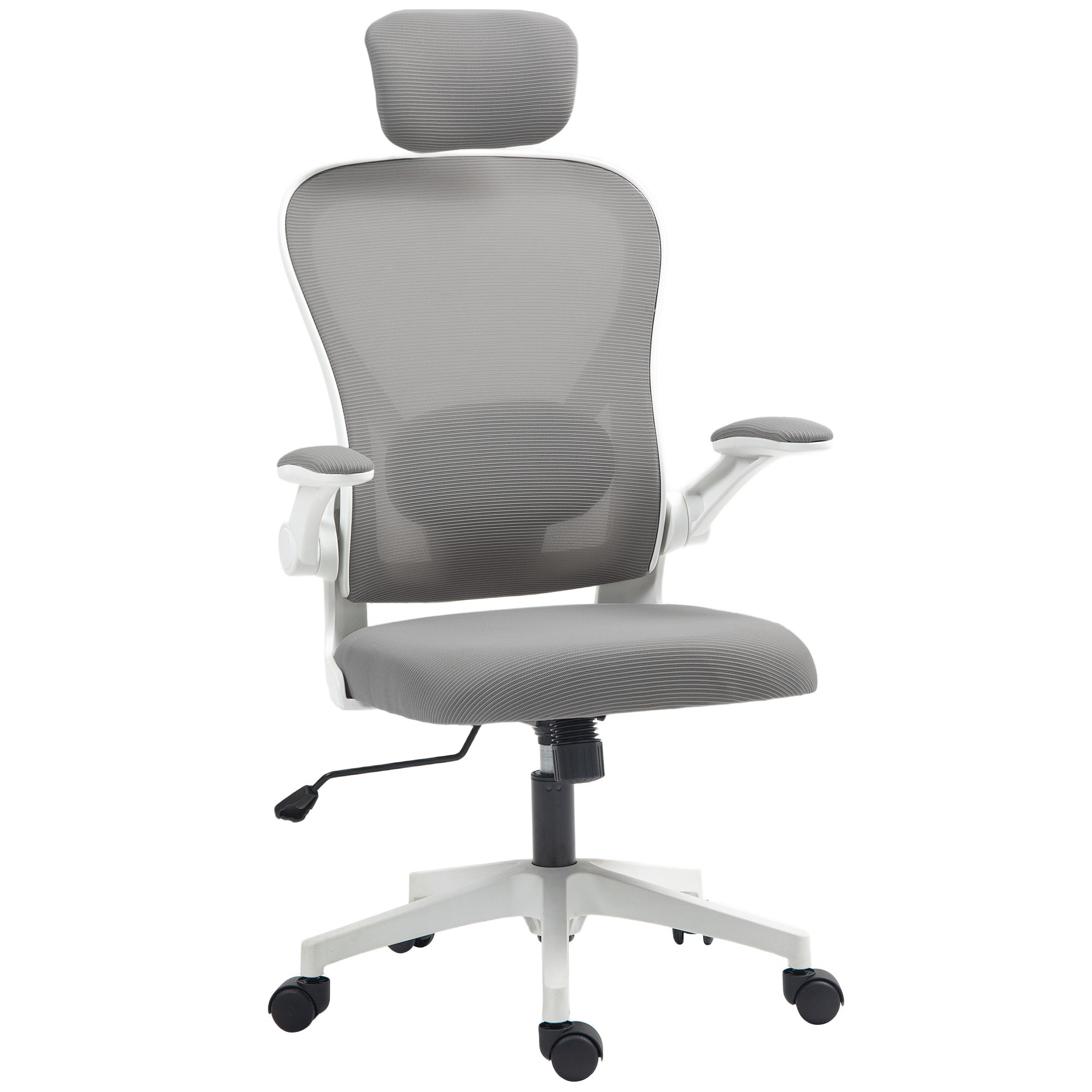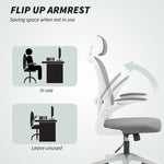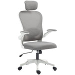Executive Office Chair, Ergonomic Mesh High Back Desk Chair with Flip-up Armrest, Rotatable Headrest, Adjustable Lumbar Support for Home Study, Grey