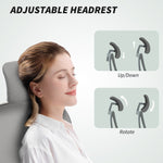 Ergonomic headrest adjusts and rotates for optimal neck support