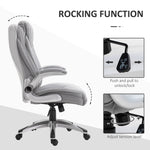 Be the boss of the comfort in your home office and workspace with this desk chair. Filled with thick high-density padding for comfort, the high back, headrest, high arms and an adjustable height keeps you supported all day long. Wrapped in faux leather for easy maintenance, and a 360° base with five castor wheels, you can move around the office easily. A seat you'll love sinking into and getting on with your work all day long.
