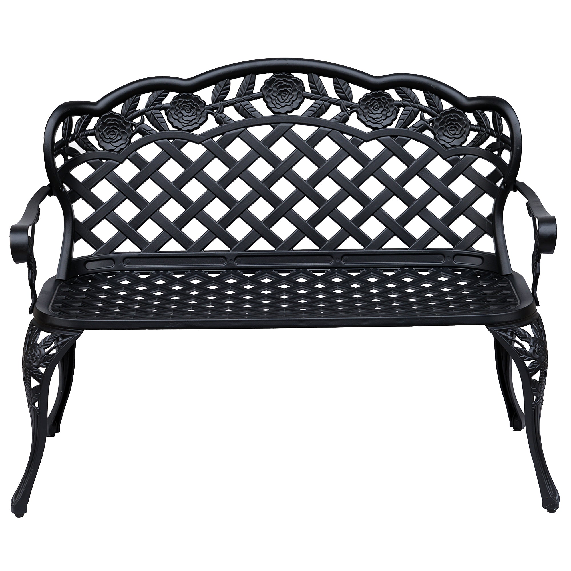 Garden Bench, Cast Aluminium, 107Lx58Wx85H cm-Black