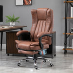 Office Chair with Massage and Heat, Microfibre Reclining Computer Desk Chair with Footrest and Adjustable Height, Swivel Wheels for Home Office, Brown